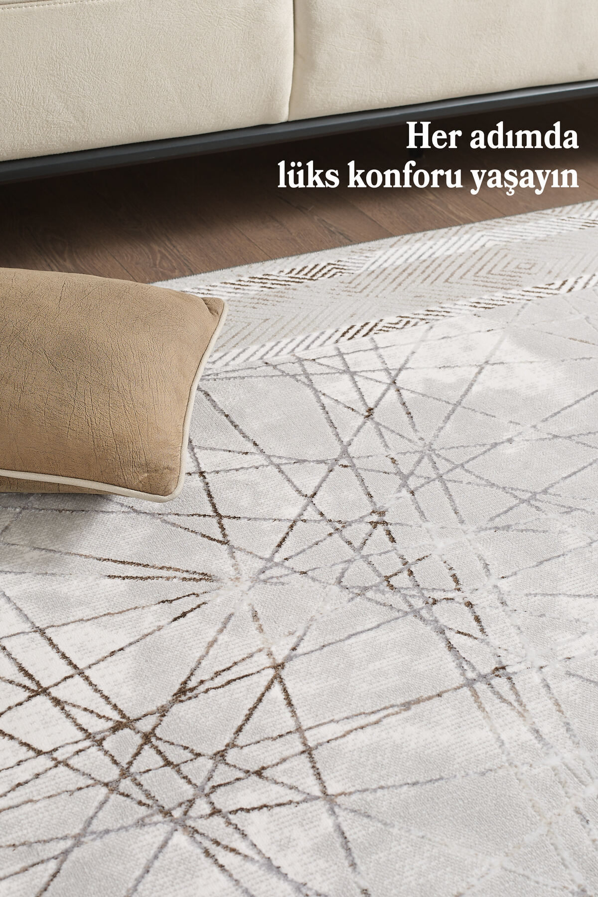 Saçaklı Salon Oturma Odası Halısı Yumuşak Polyester Pamuk Taban Modern ve Klasik Desenli Halı Bej Saçaklı Salon Oturma Odası Halısı Yumuşak Polyester Pamuk Taban Modern ve Klasik Desenli Halı Bej Ho-Cle.an.eNva 160 x 230