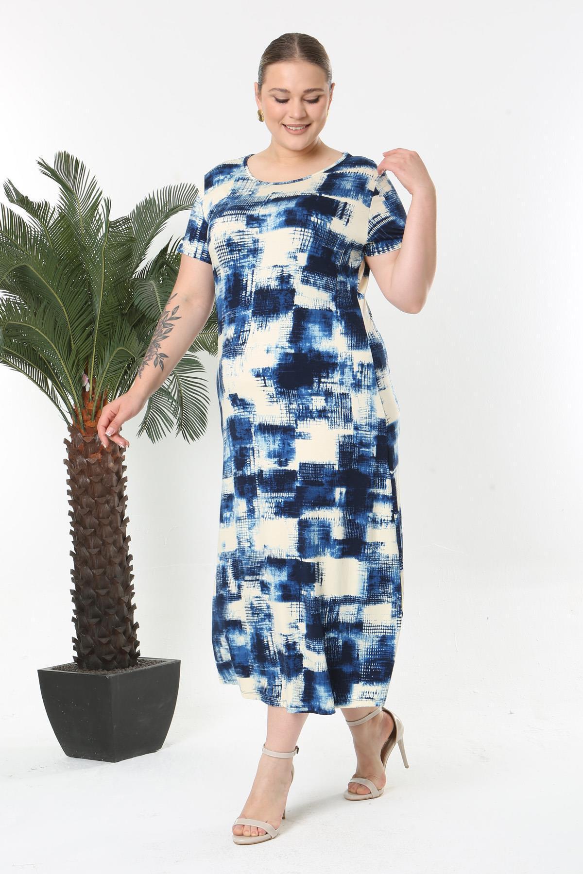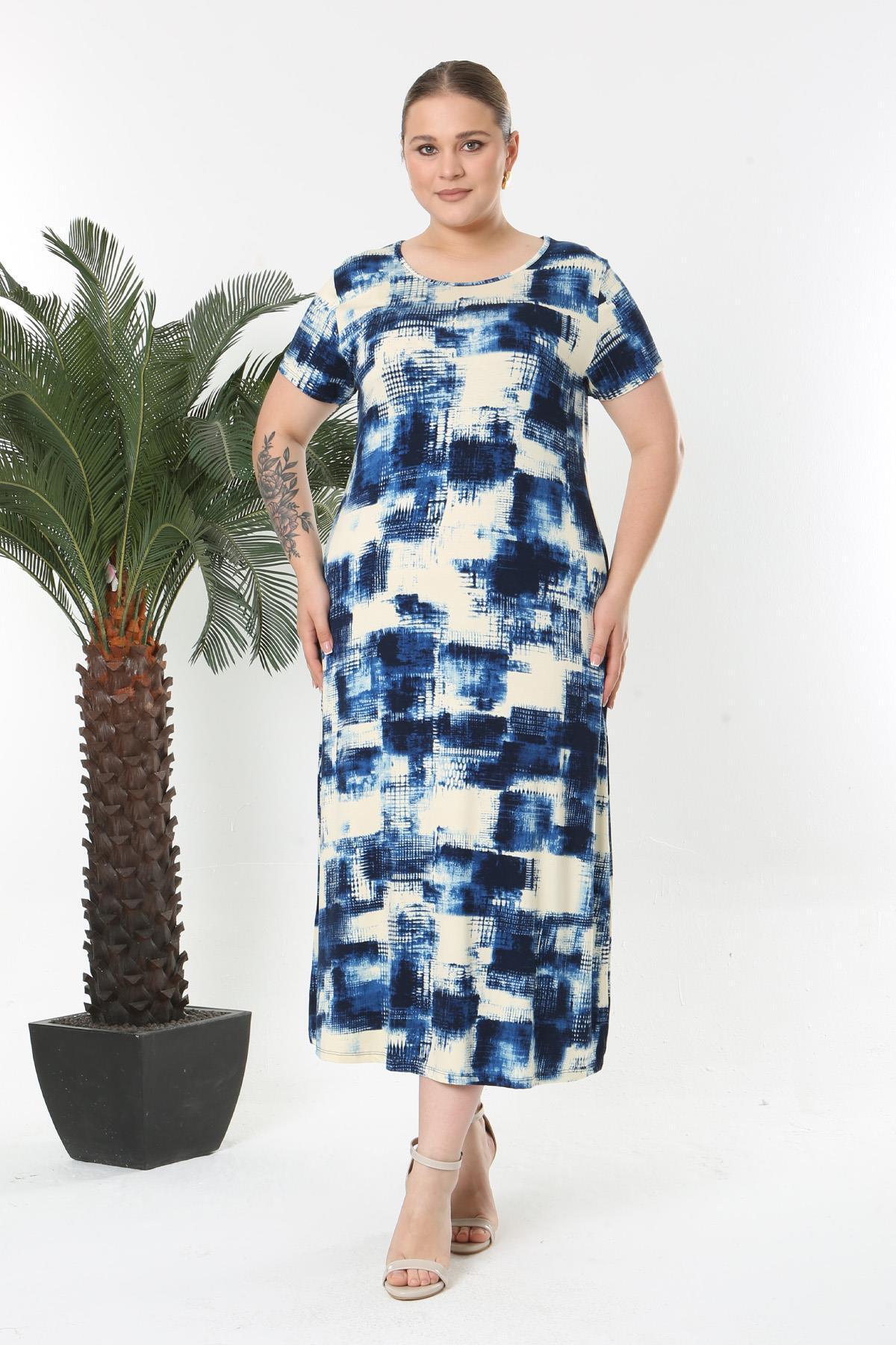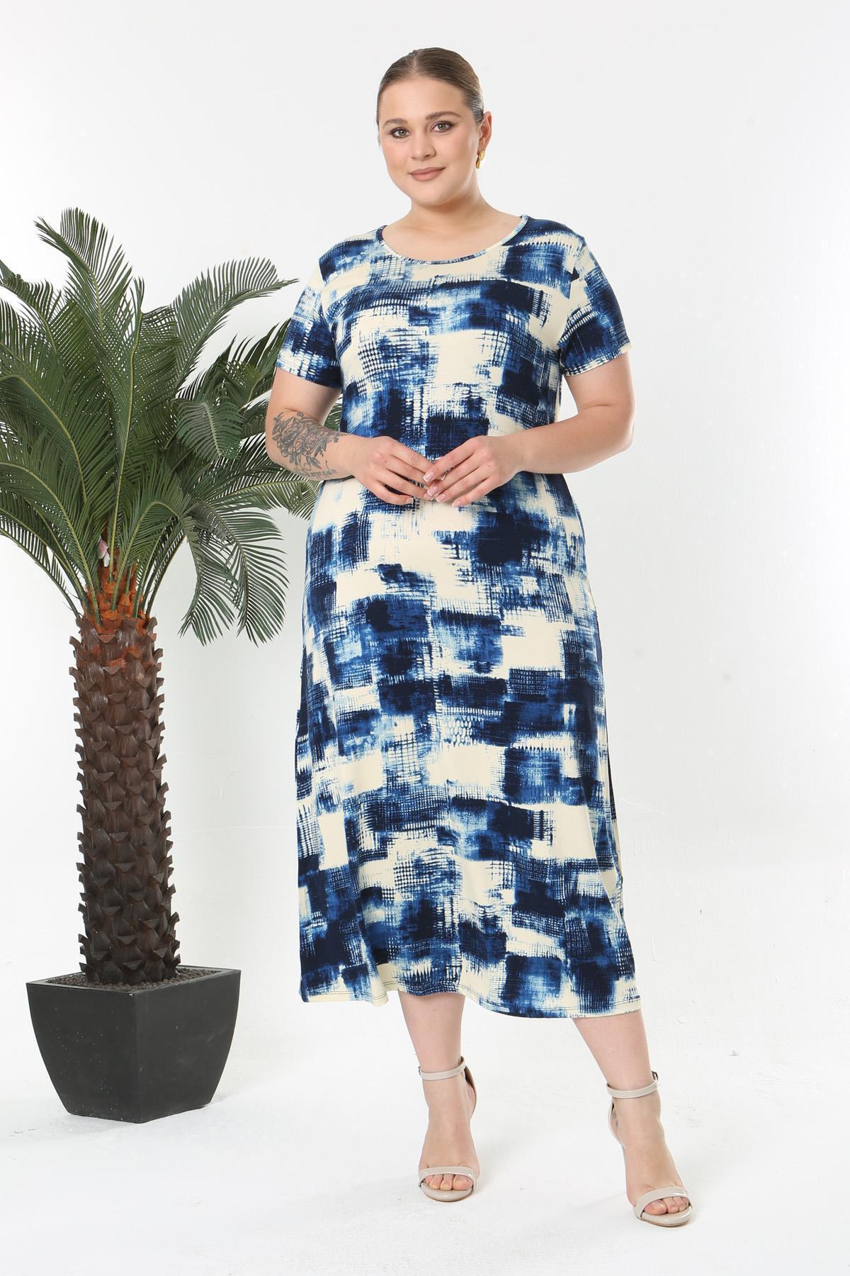 Kadın Lacivert Bej Soyut Desen Esnek Maxi Elbise Kadın Lacivert Bej Soyut Desen Esnek Maxi Elbise MW2503101 52-54