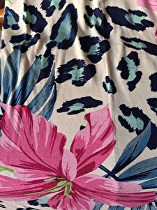 Kadın Pembe Mavi Tropikal Leopar Desen Esnek Maxi Elbise Kadın Pembe Mavi Tropikal Leopar Desen Esnek Maxi Elbise MW2503101 52-54