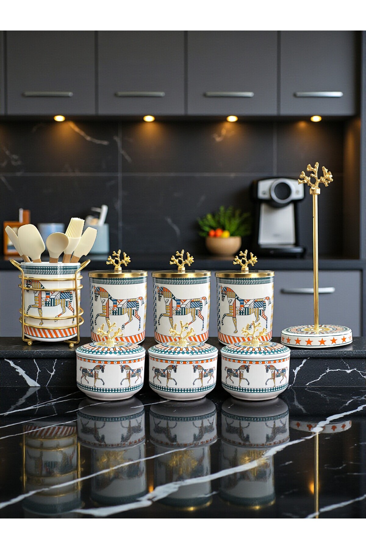 Baharatlık Silindir Seramik Kapaklı 3 lü Kahve Köşesi Seti Zebra At Desen 750 ml Hacimli Gold Baharatlık Silindir Seramik Kapaklı 3 lü Kahve Köşesi Seti Zebra At Desen 750 ml Hacimli Gold K1554 تک سایز