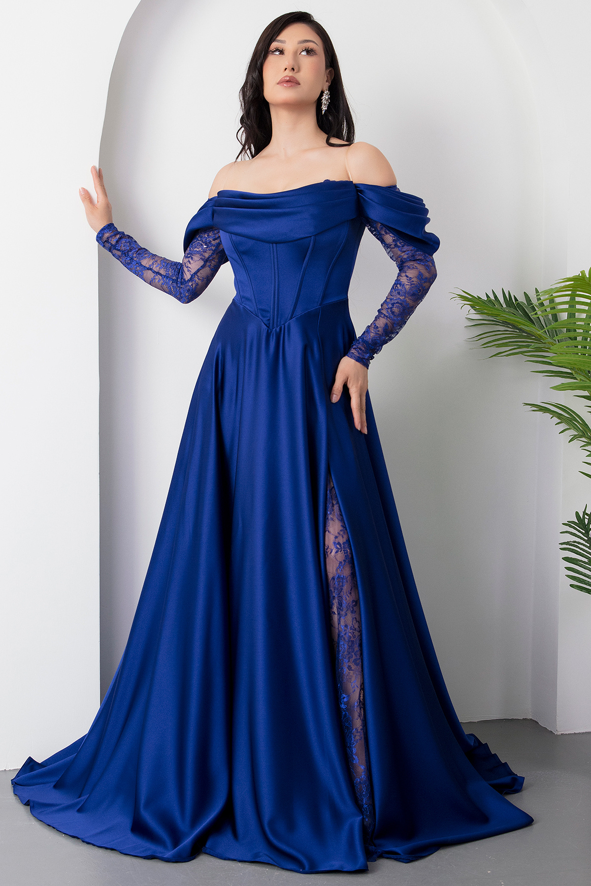 Kalp Yaka Dantel Detay Atlas Elbise ECR5561 Kalp Yaka Dantel Detay Atlas Elbise ECR5561 25K69087HB7 42