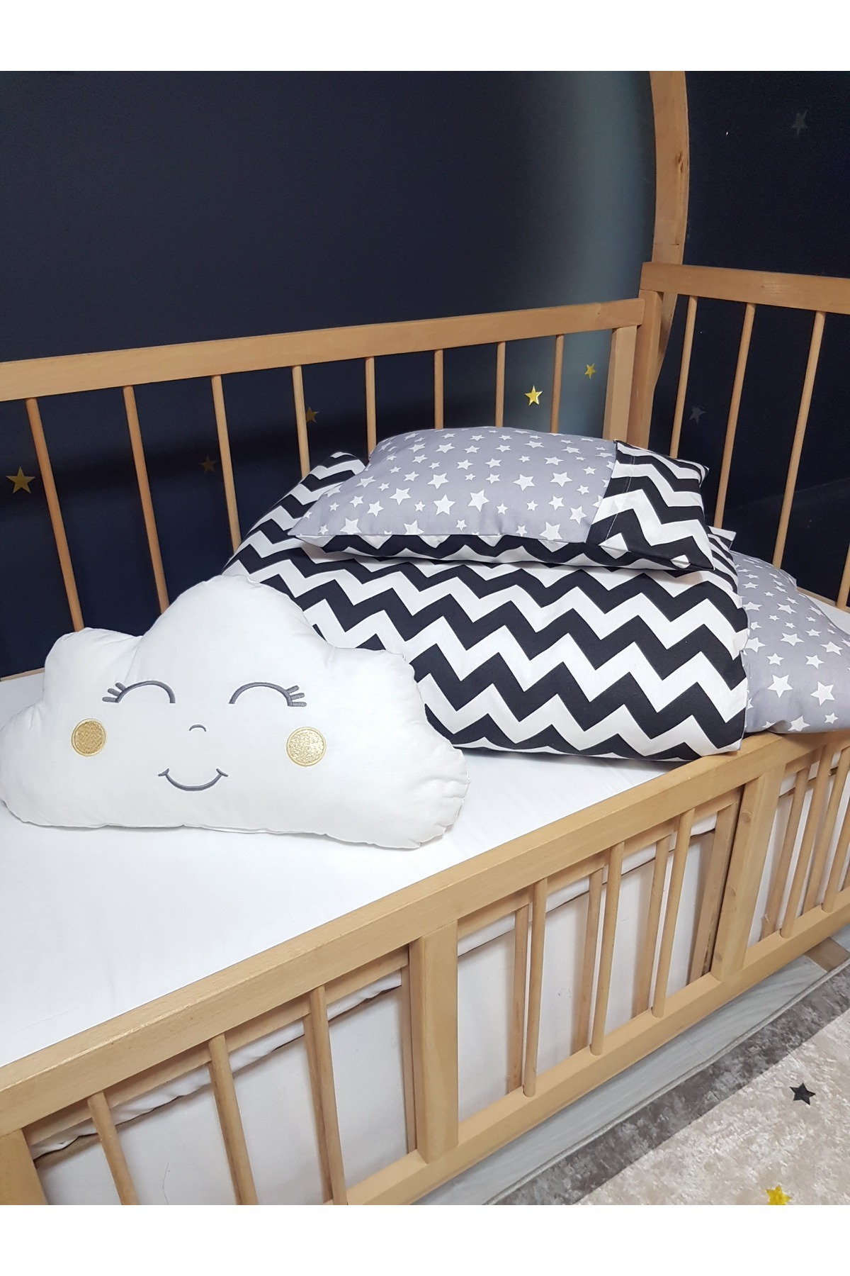 Bebek Beşik Uyku Seti - Bulut Yastıklı 95x135 Yorgan, Beyaz Çarşaf, Yastık Bebek Beşik Uyku Seti - Bulut Yastıklı 95x135 Yorgan, Beyaz Çarşaf, Yastık USR-6-90130-1. تک سایز