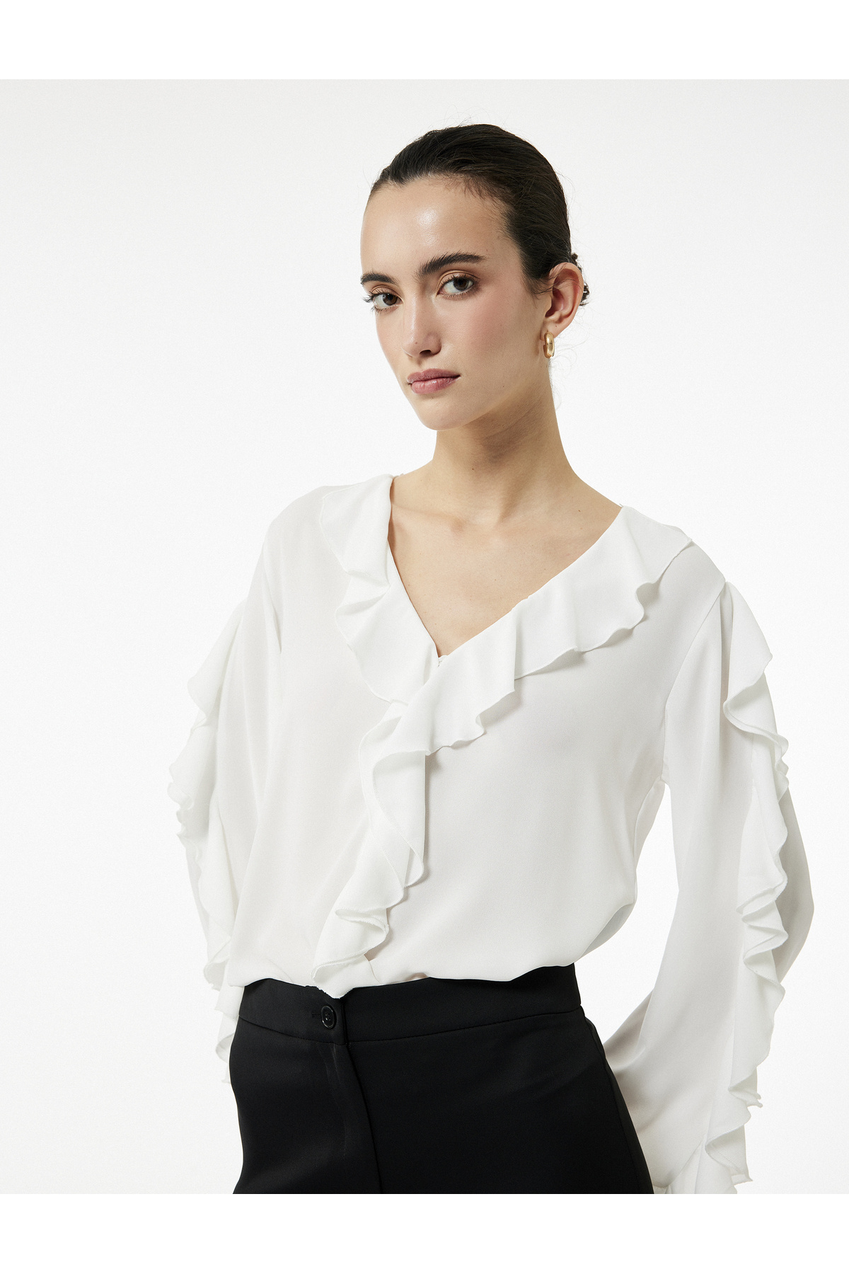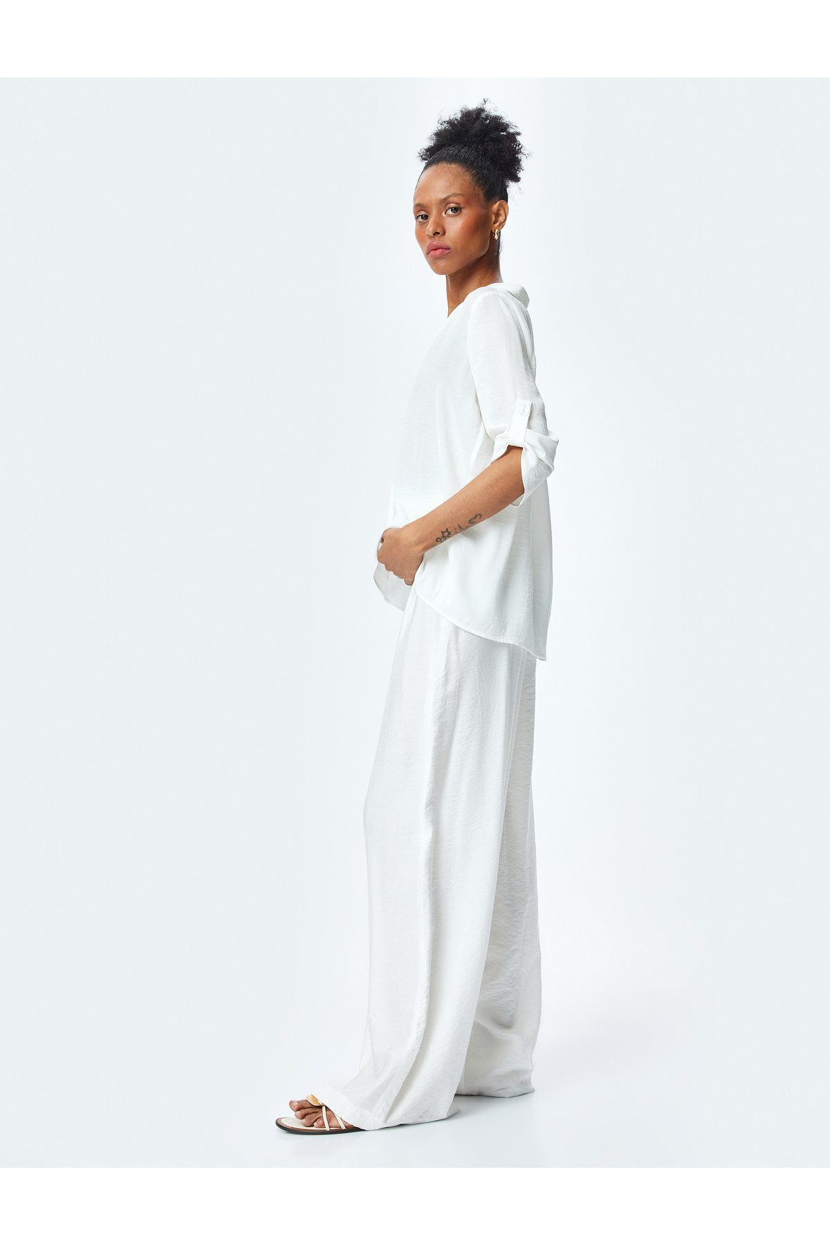 Rahat Kalıp Ceket Yaka 3/4 Kol Katlama Detaylı Bluz Rahat Kalıp Ceket Yaka 3/4 Kol Katlama Detaylı Bluz 5SAK60011PW 44