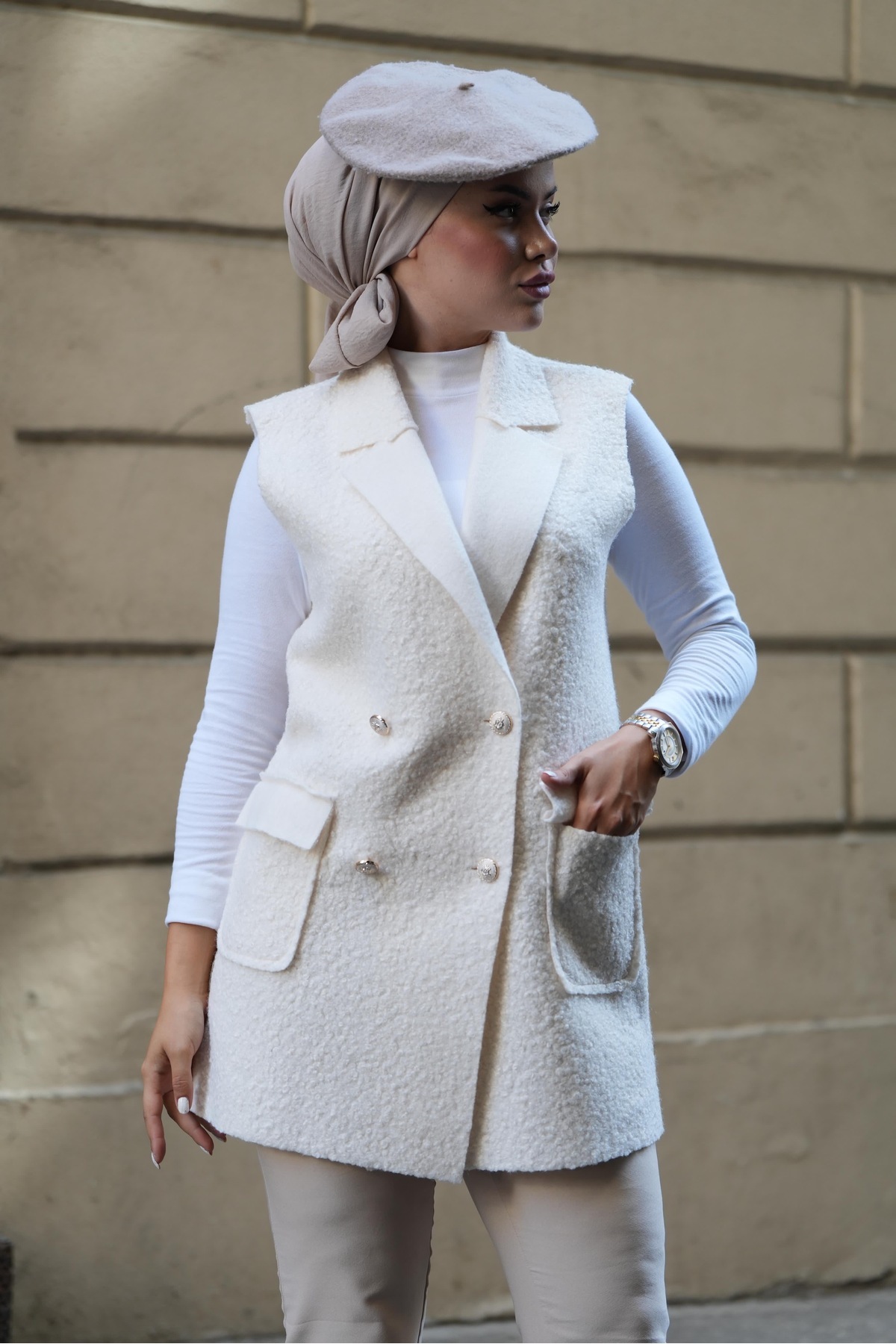 Taş Rengi Astarlı Kuşak Detaylı Uzun Keten Yelek Taş Rengi Astarlı Kuşak Detaylı Uzun Keten Yelek Y-Mry03 L