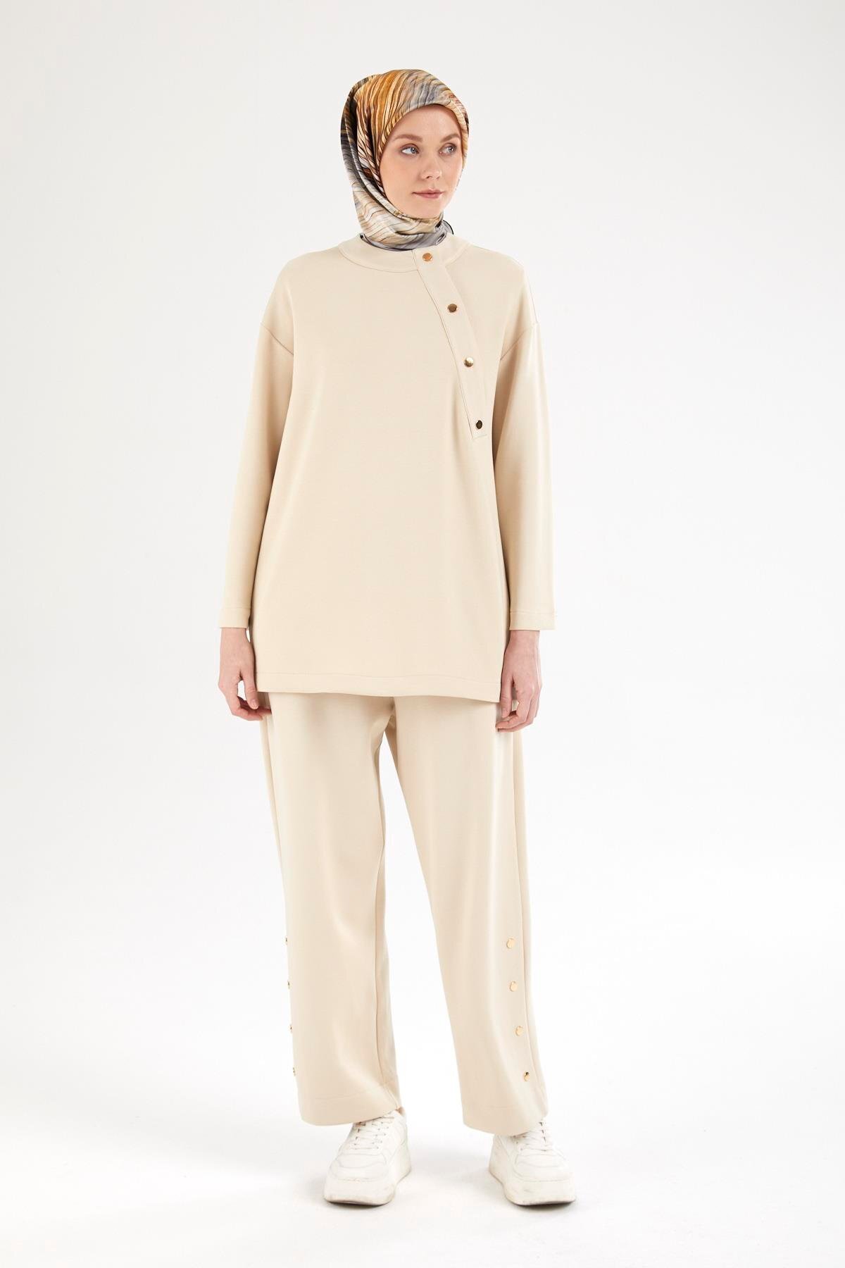 TREND Yakadan Düğme Detaylı Pantolonlu İkili Takım-Bej 25YT615 TREND Yakadan Düğme Detaylı Pantolonlu İkili Takım-Bej 25YT615 4236 44