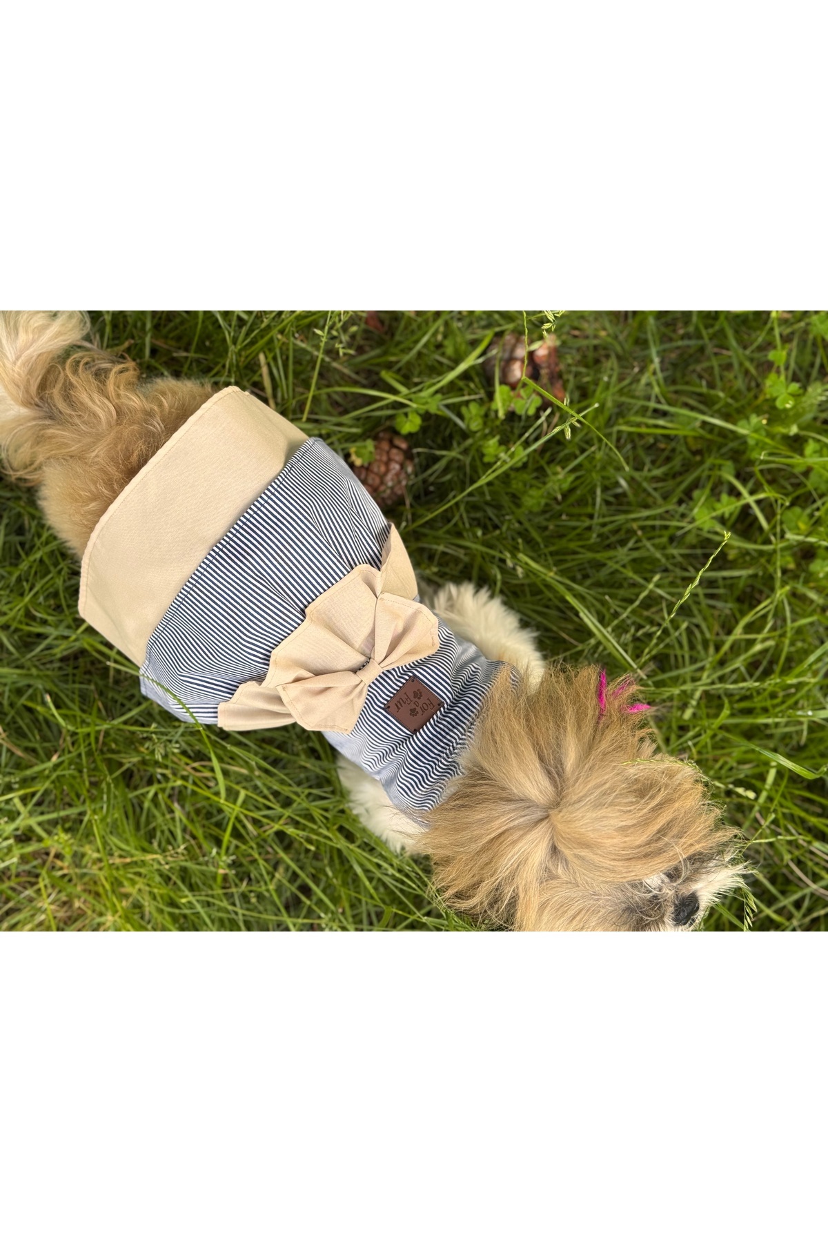 Köpek Elbisesi Kıyafeti Bej Lacivert Çizgili Poplin Kumaş Kedi Elbisesi Köpek Elbisesi Kıyafeti Bej Lacivert Çizgili Poplin Kumaş Kedi Elbisesi 748382928 XS