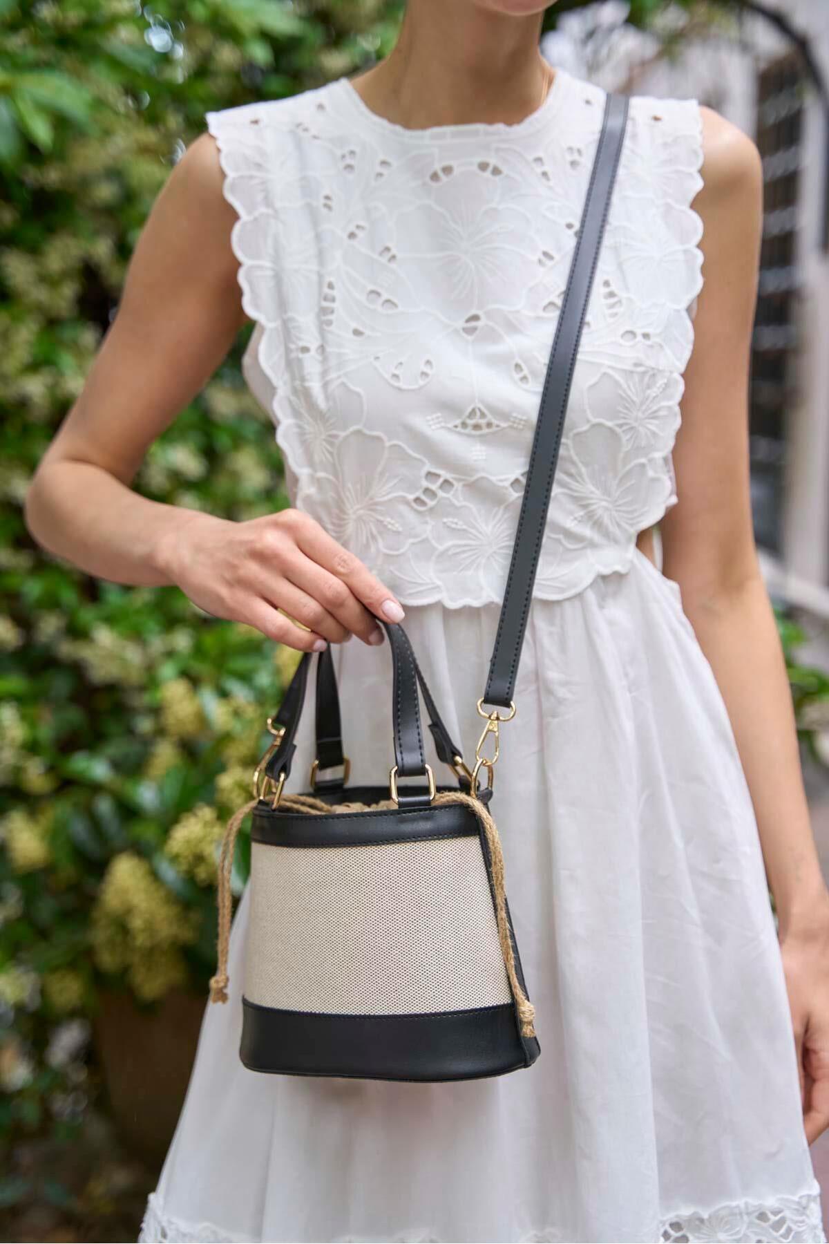 Kanvas- Siyah Kadın Bohem Tarzı Kova El ve Omuz Çantası Kanvas- Siyah Kadın Bohem Tarzı Kova El ve Omuz Çantası MK1020225SV10-024 تک سایز