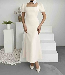 Bej Kadın Kare Yaka Karpuz Kol Fermuarlı Krep Kumaş Elbise Bej Kadın Kare Yaka Karpuz Kol Fermuarlı Krep Kumaş Elbise DFX398050 XL