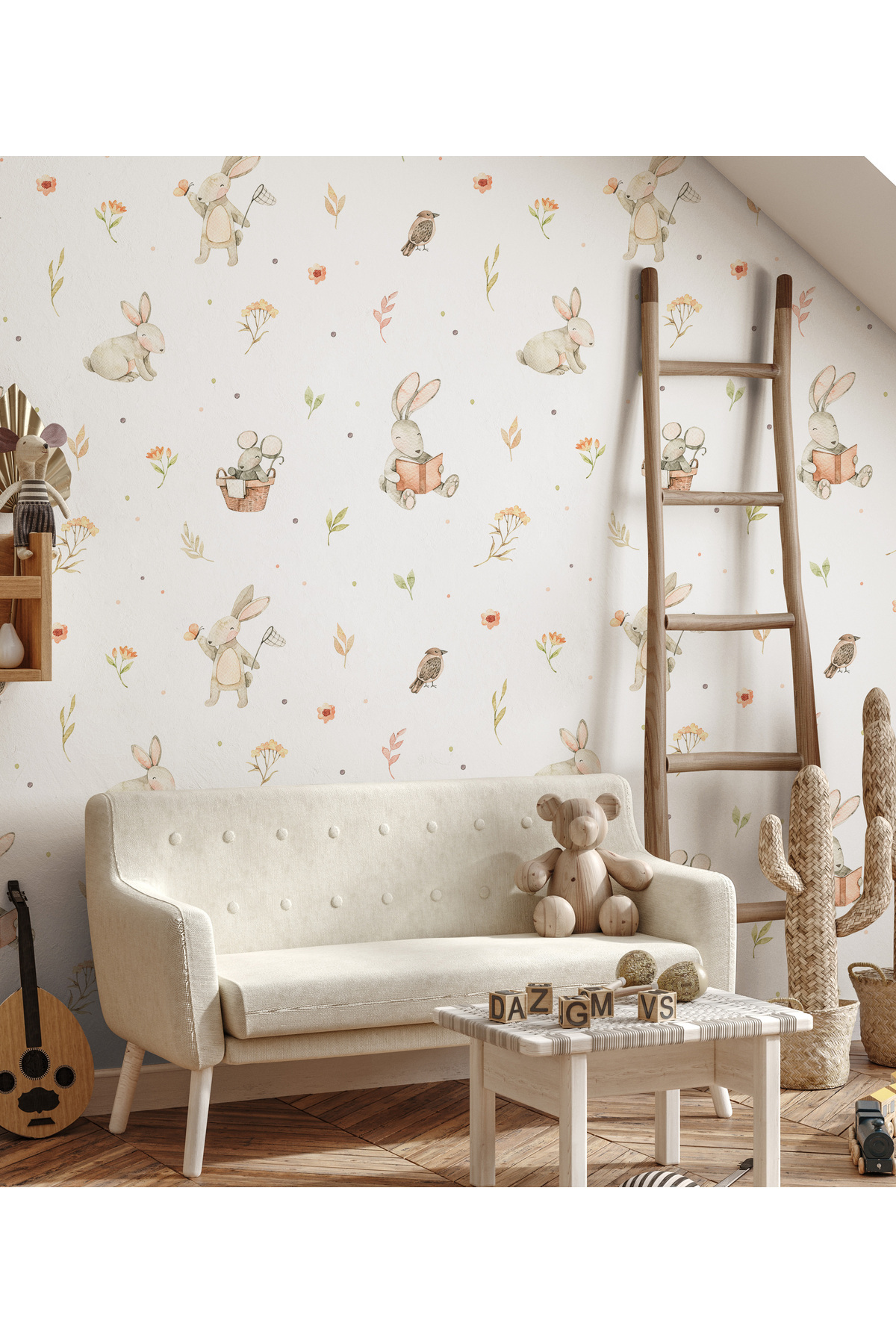 Minimal Tavşanlar ve Yapraklar Çocuk Odası Duvar Kağıdı Minimal Tavşanlar ve Yapraklar Çocuk Odası Duvar Kağıdı Kid-788002 250 x 170