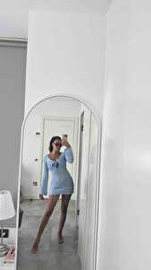 Zakura Bağcık Detay Mavi Triko Mini Elbise Zakura Bağcık Detay Mavi Triko Mini Elbise B31S3632W1 M/L
