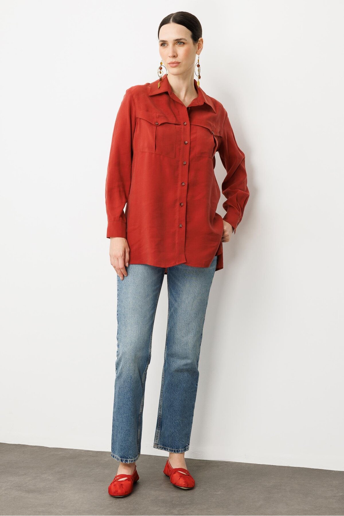 Cep Detaylı Cupra Gömlek-KİREMİT Cep Detaylı Cupra Gömlek-KİREMİT 5SKB81K1604 44