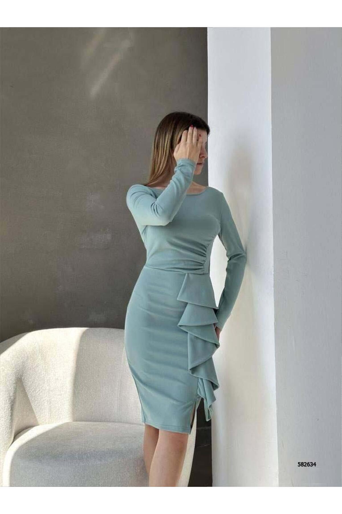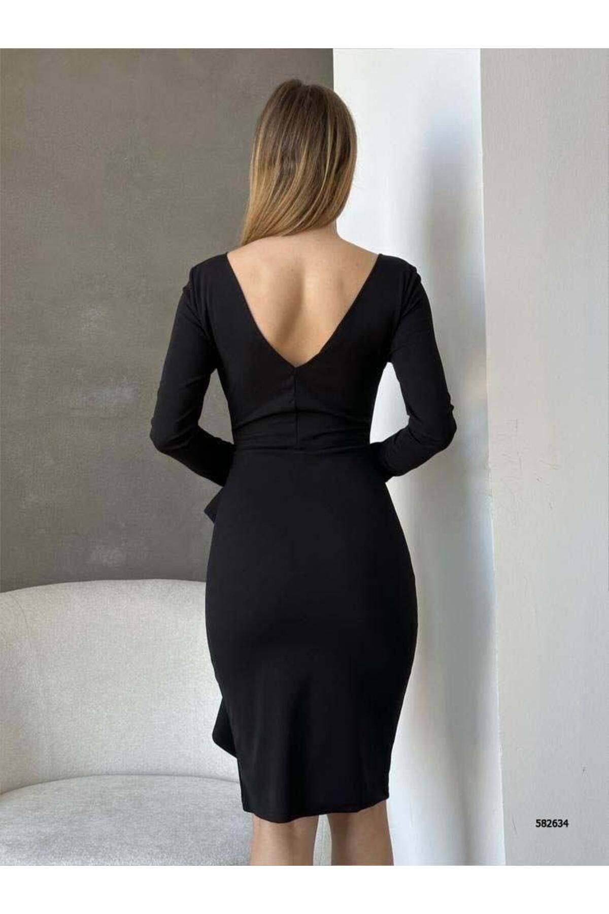 Bisiklet Yaka Uzun Kol Volan Detay Ithal Krep Kumaş Elbise 582634 Siyah Bisiklet Yaka Uzun Kol Volan Detay Ithal Krep Kumaş Elbise 582634 Siyah L