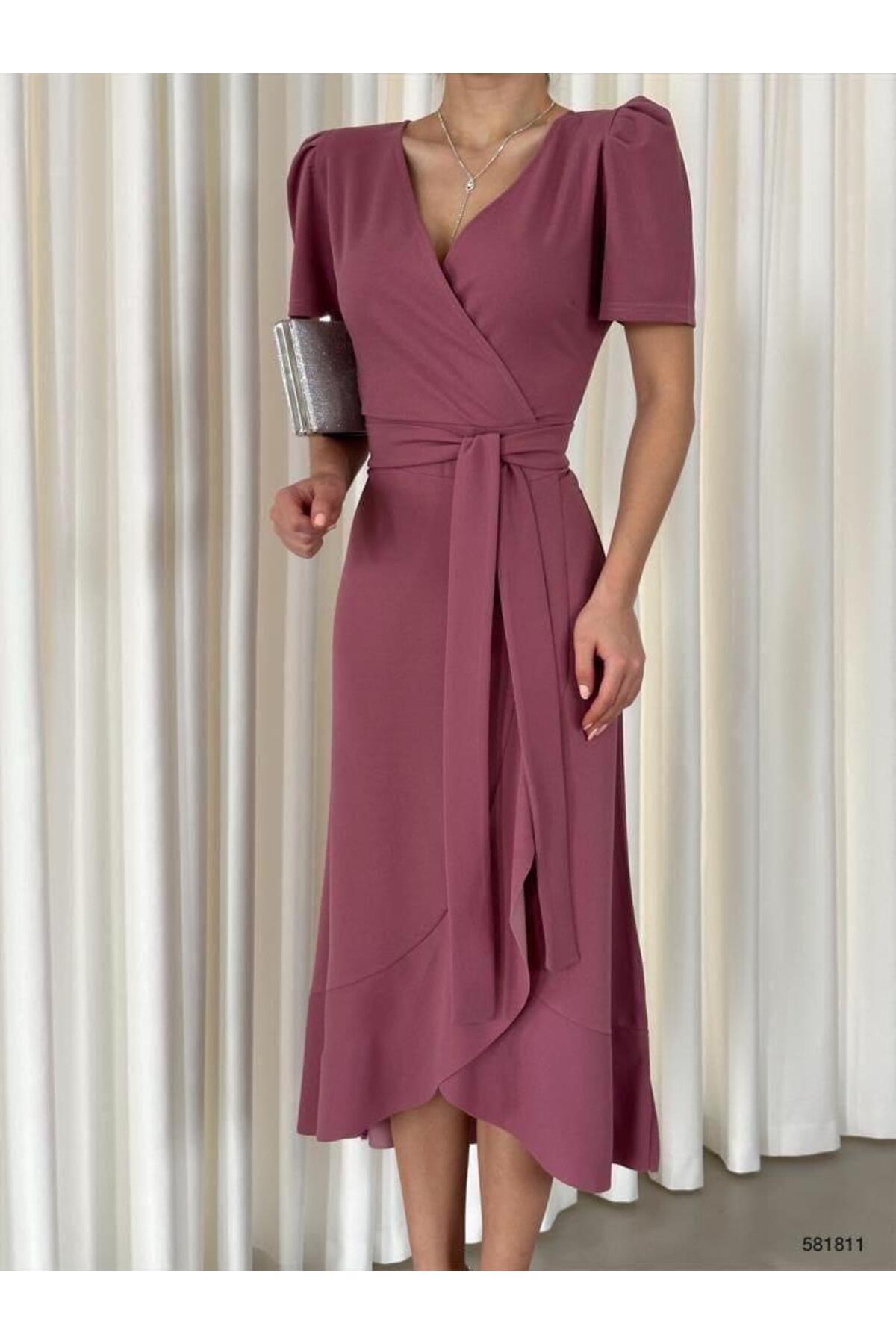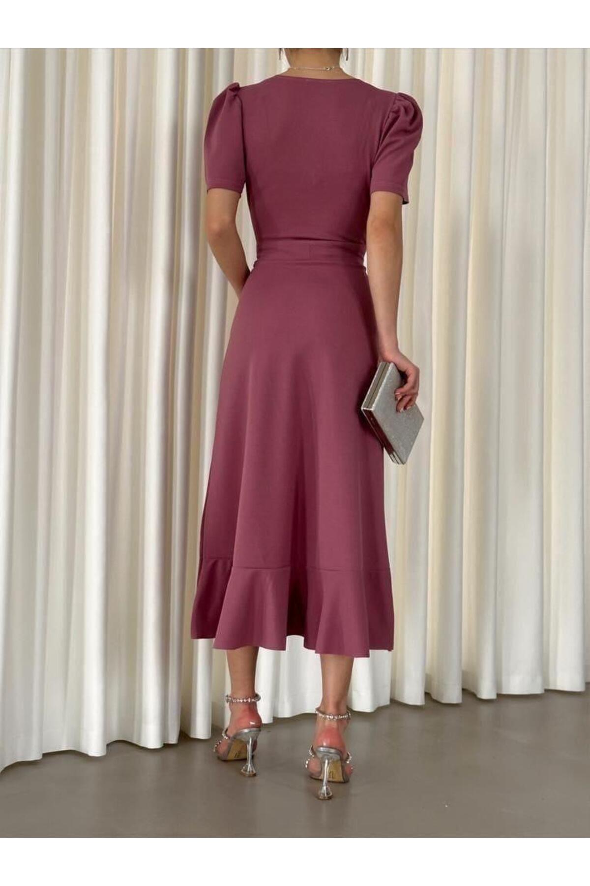 KRUVAZE YAKA KISA KOL VOLANLI KUŞAKLI MİDİ BOY ELBİSE GÜL KURUSU 581811 KRUVAZE YAKA KISA KOL VOLANLI KUŞAKLI MİDİ BOY ELBİSE GÜL KURUSU 581811 3XL