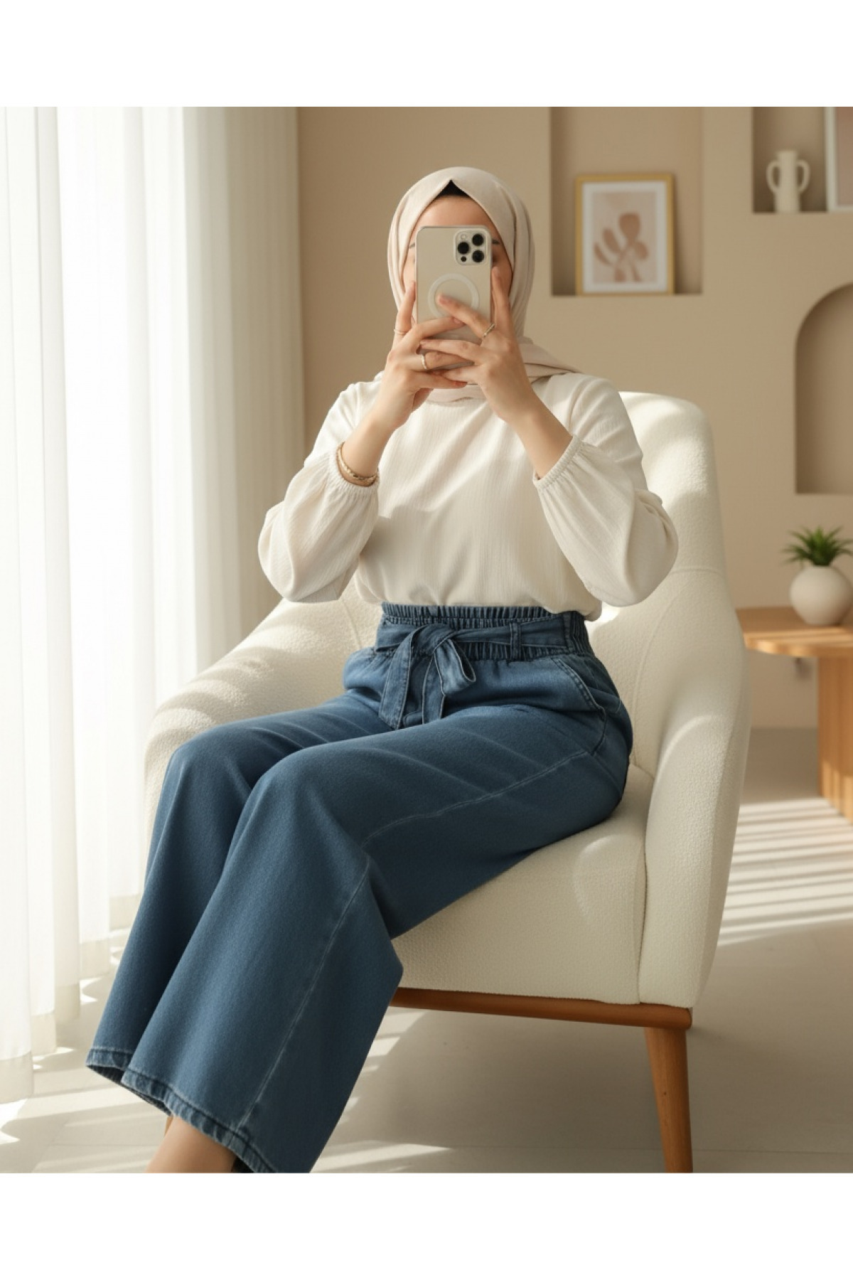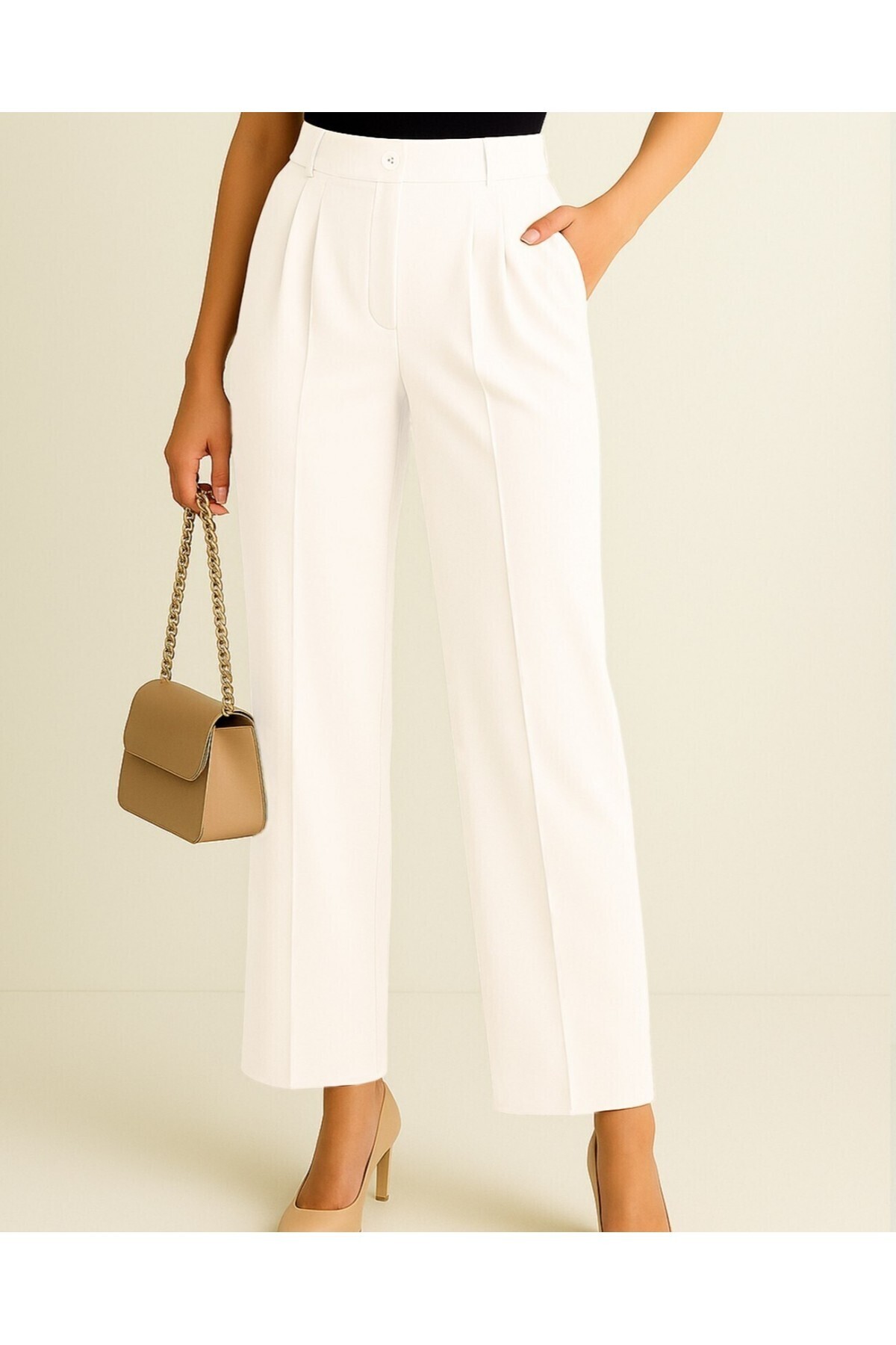 Tek Düğmeli Önü Katlama Detaylı Cepli Pantolon -Beyaz Tek Düğmeli Önü Katlama Detaylı Cepli Pantolon -Beyaz TY400-10056 46