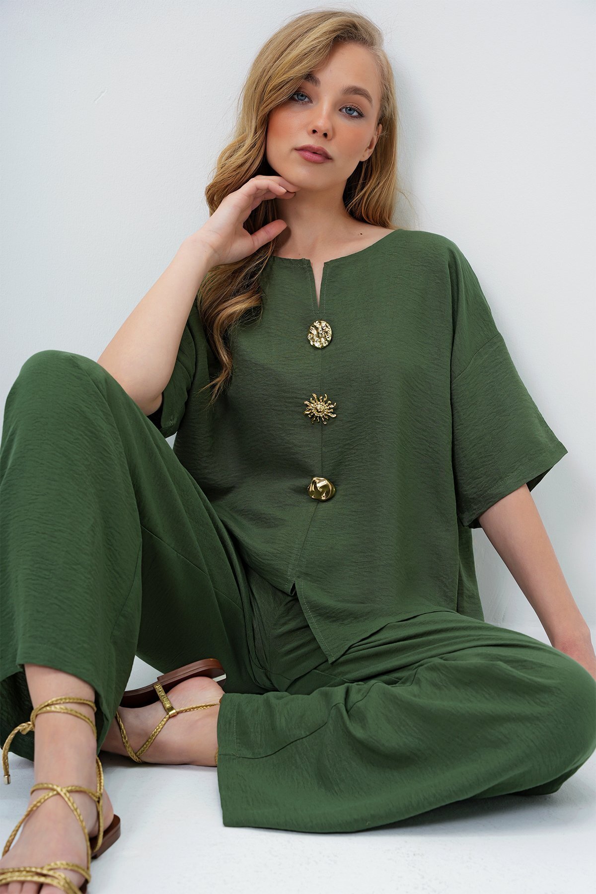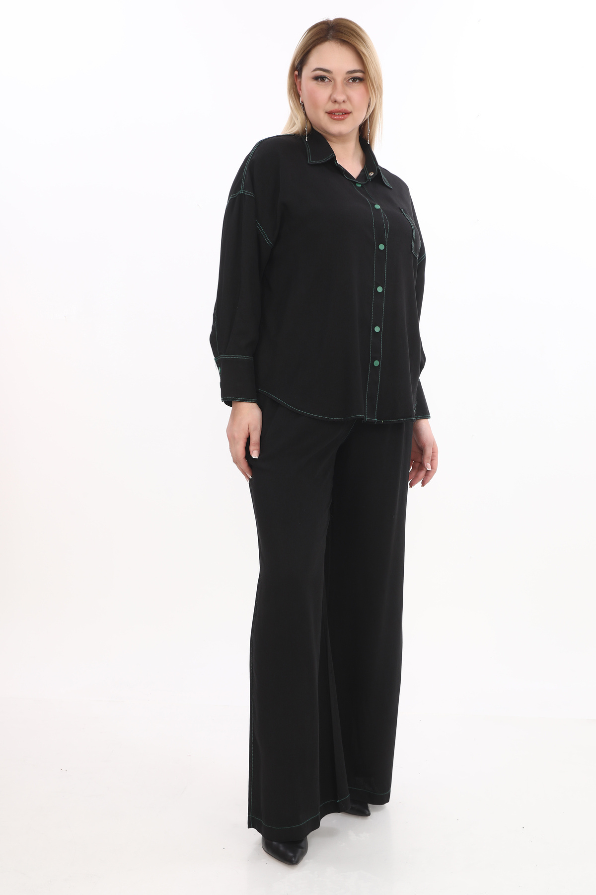 Kadın İkili Siyah Yeşil Yazlık Takım Üst Pantolon Kadın İkili Siyah Yeşil Yazlık Takım Üst Pantolon 7-277-4402 42
