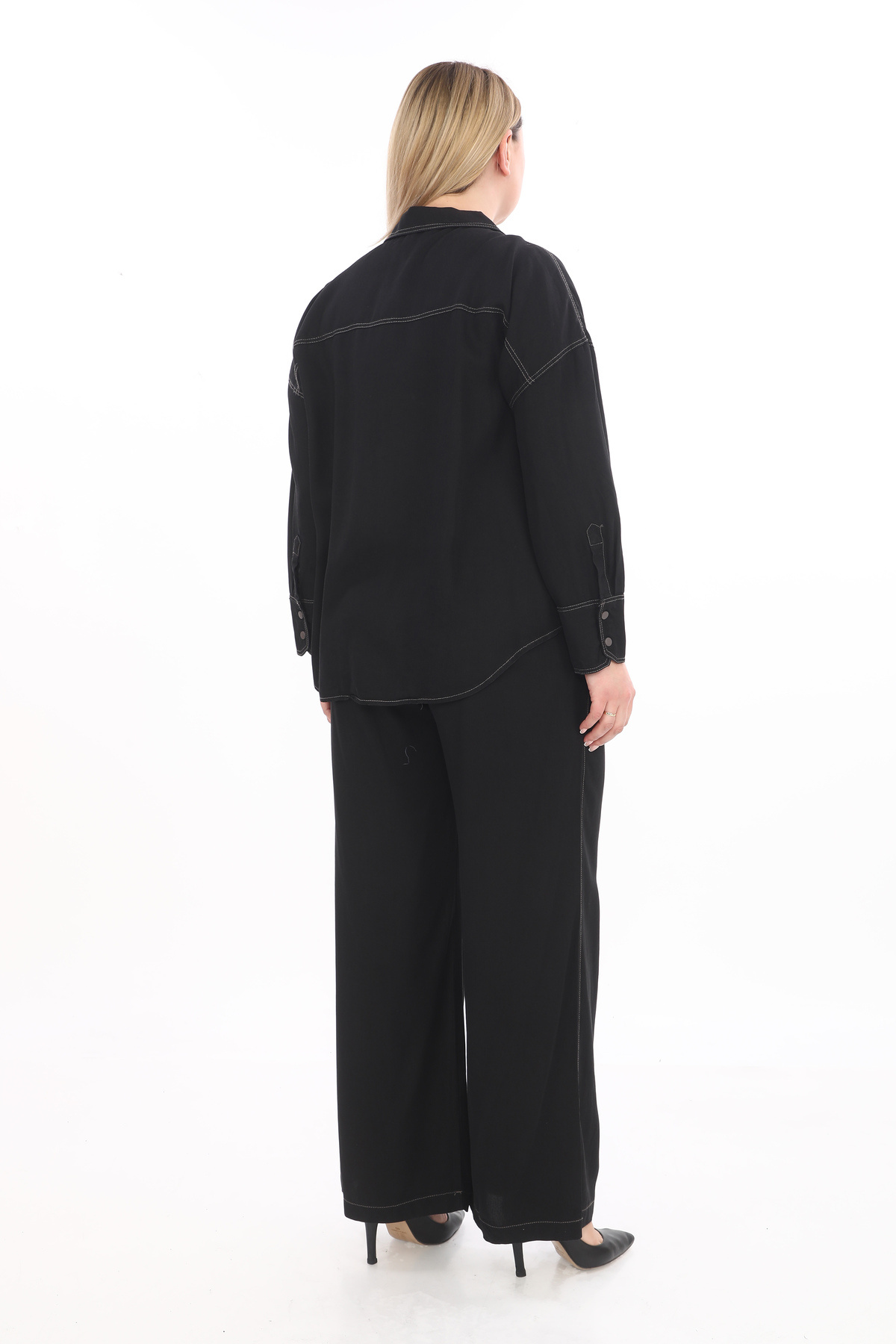 Kadın İkili Siyah Vizon Yazlık Takım Üst Pantolon Kadın İkili Siyah Vizon Yazlık Takım Üst Pantolon 7-277-4402 42
