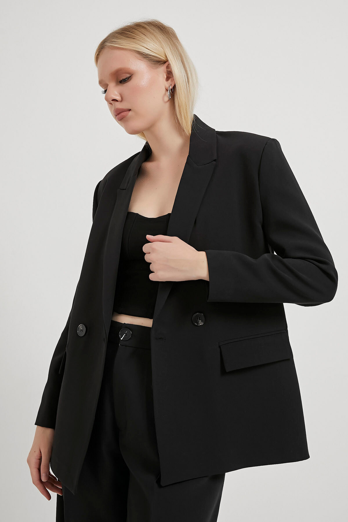 Kadın Bol Ofis Stili Premium Siyah Blazer Ceket Kadın Bol Ofis Stili Premium Siyah Blazer Ceket 463-5YB2428CKT XL