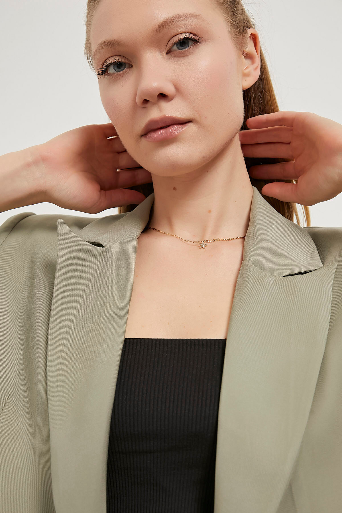 Kadın Bol Ofis Stili Premium Haki Blazer Ceket Kadın Bol Ofis Stili Premium Haki Blazer Ceket 463-5YB2428CKT XL