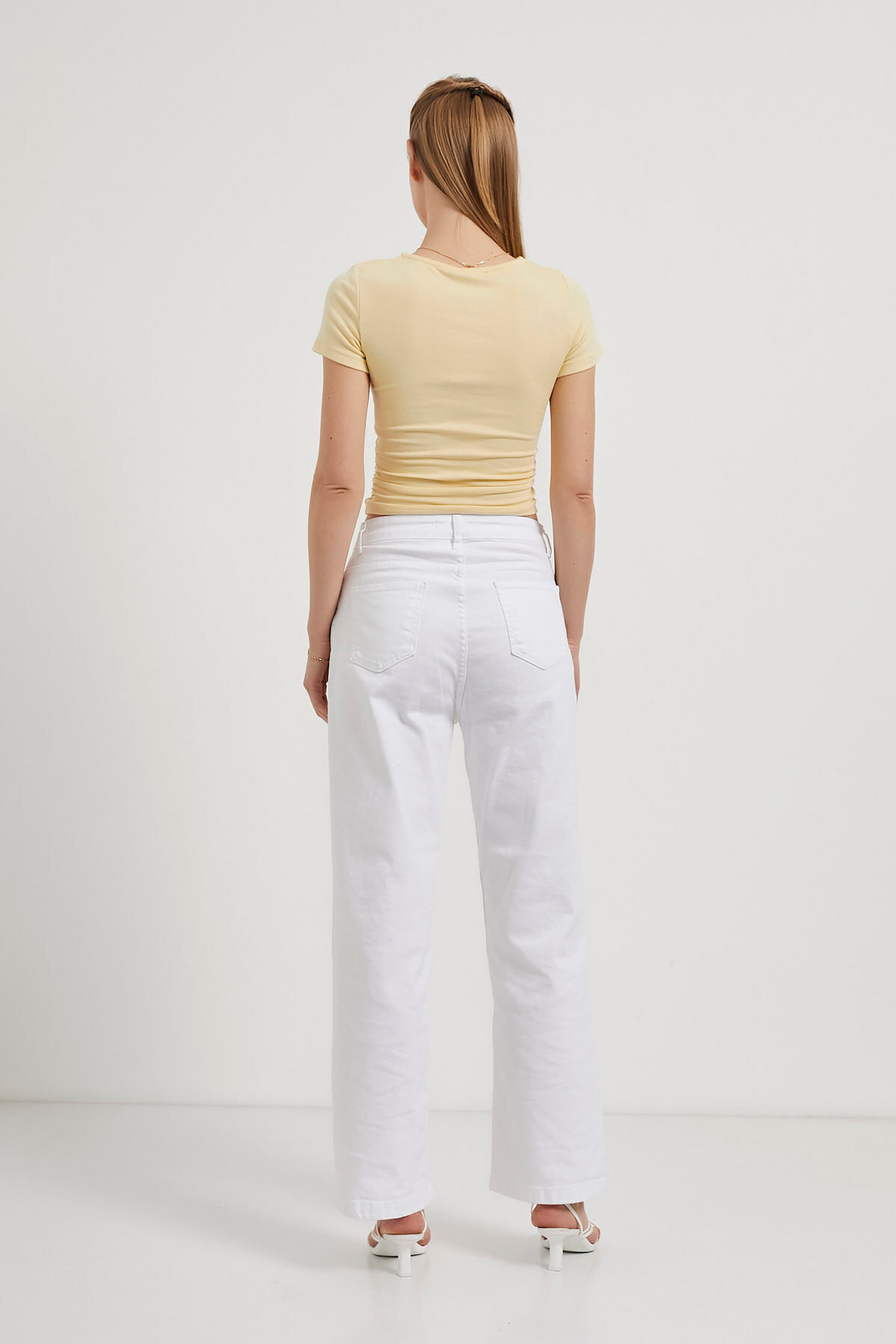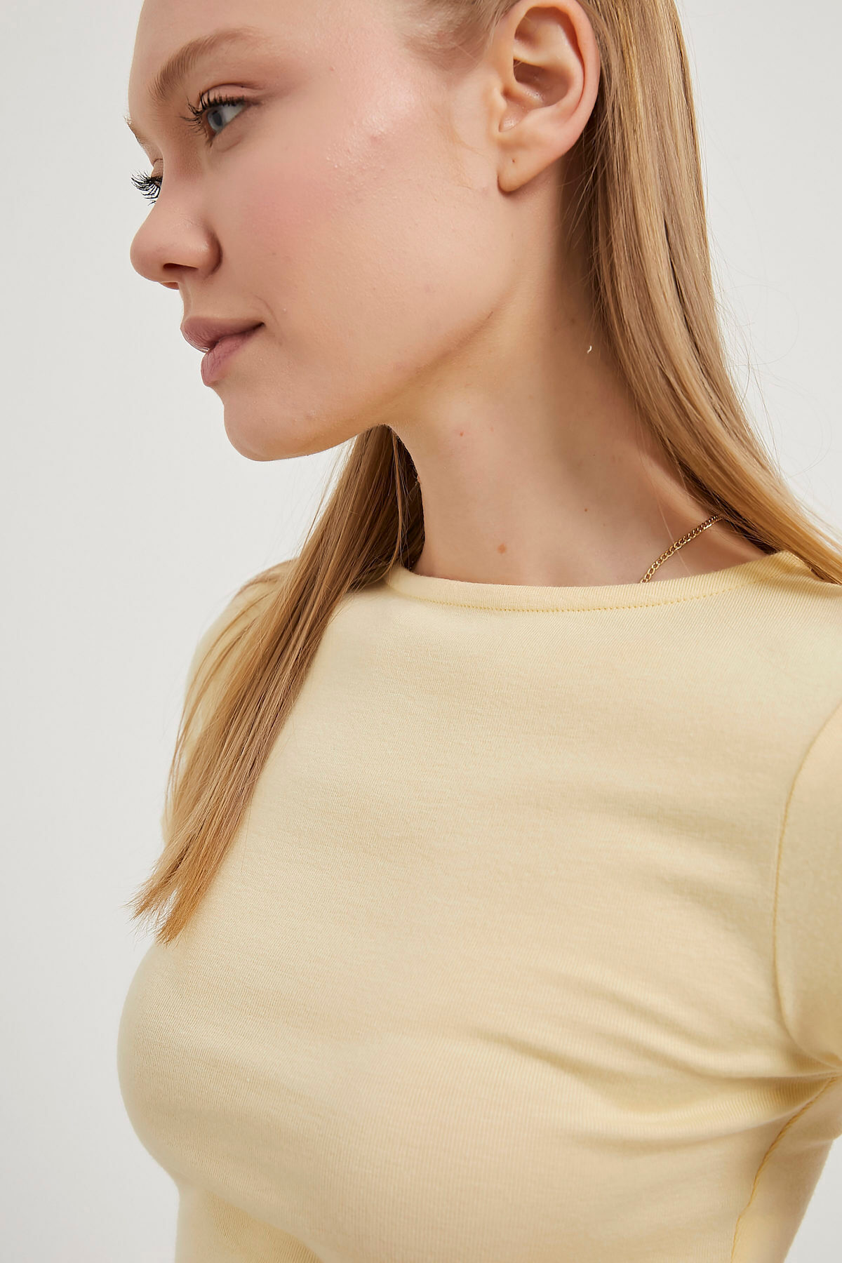 Kadın Kısa Kollu Esnek Dar Kayık Yaka Sarı Tişört Kadın Kısa Kollu Esnek Dar Kayık Yaka Sarı Tişört 544-5YB3002-1TSH L
