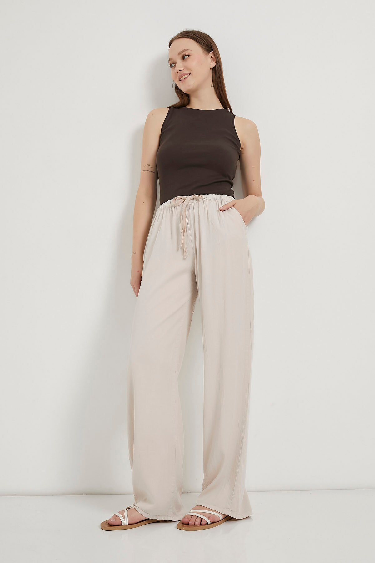 Kadın Lastikli Bol Müslin Kahve Palazzo Pantolon Kadın Lastikli Bol Müslin Kahve Palazzo Pantolon 463-5YB7051PTL XL
