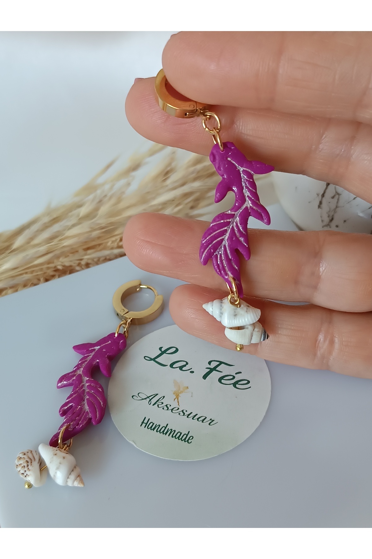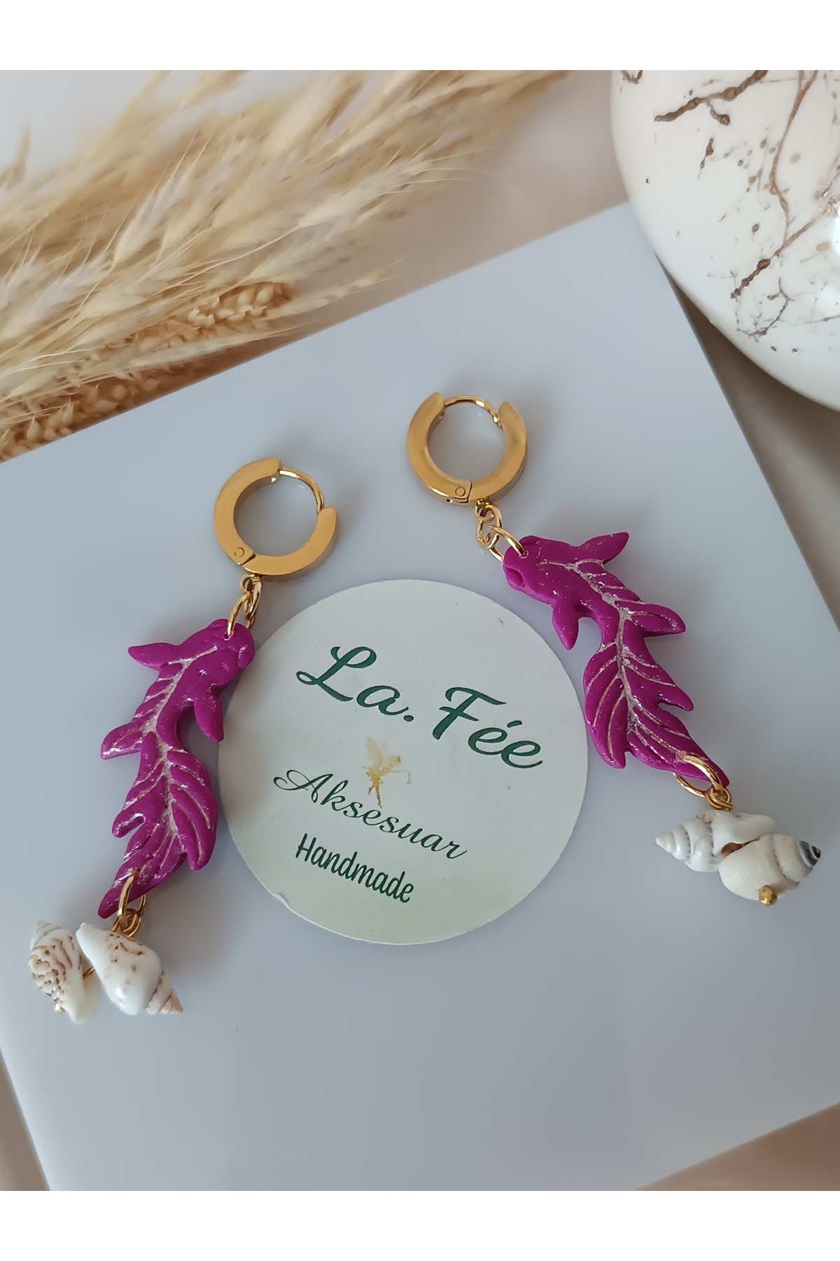Çelik Küpeli Özel Tasarım Mürdüm Renk Koi Balığı El Yapımı Polimer Kil Kadın Küpe Deniz Kabuğu Detay Çelik Küpeli Özel Tasarım Mürdüm Renk Koi Balığı El Yapımı Polimer Kil Kadın Küpe Deniz Kabuğu Detay lafeekoikp تک سایز