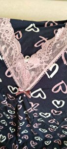 Kalp Desenli Lacivert Ring Viskon Dantel Detaylı Kısa Kol Büyük Beden Kapri Pijama Takım Kalp Desenli Lacivert Ring Viskon Dantel Detaylı Kısa Kol Büyük Beden Kapri Pijama Takım 2401 5XL