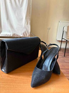 Kadın Sivri Burun Parlak Gece Ayakkabısı Ve Çantası Siyah Kadın Sivri Burun Parlak Gece Ayakkabısı Ve Çantası Siyah özel topuklu 40