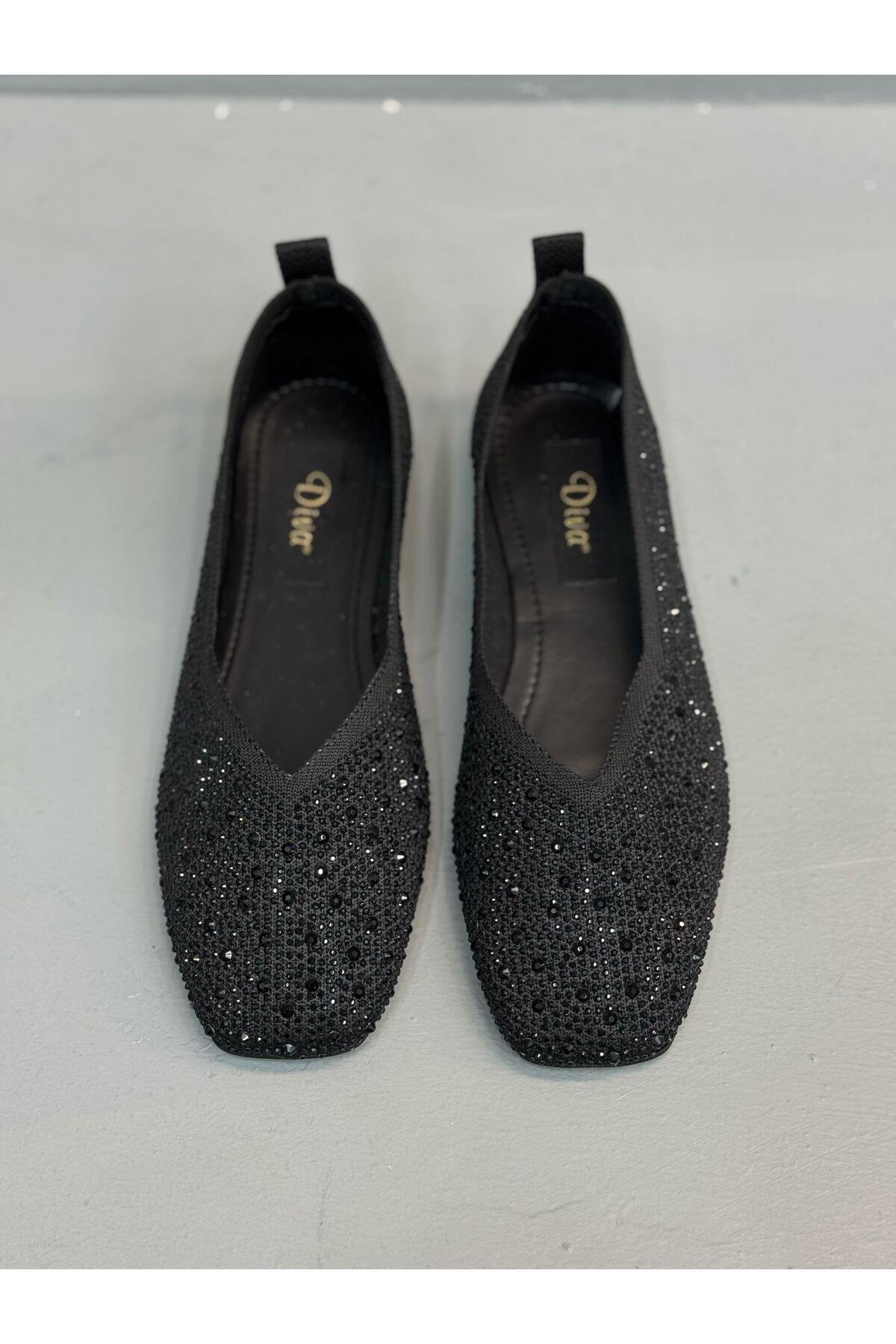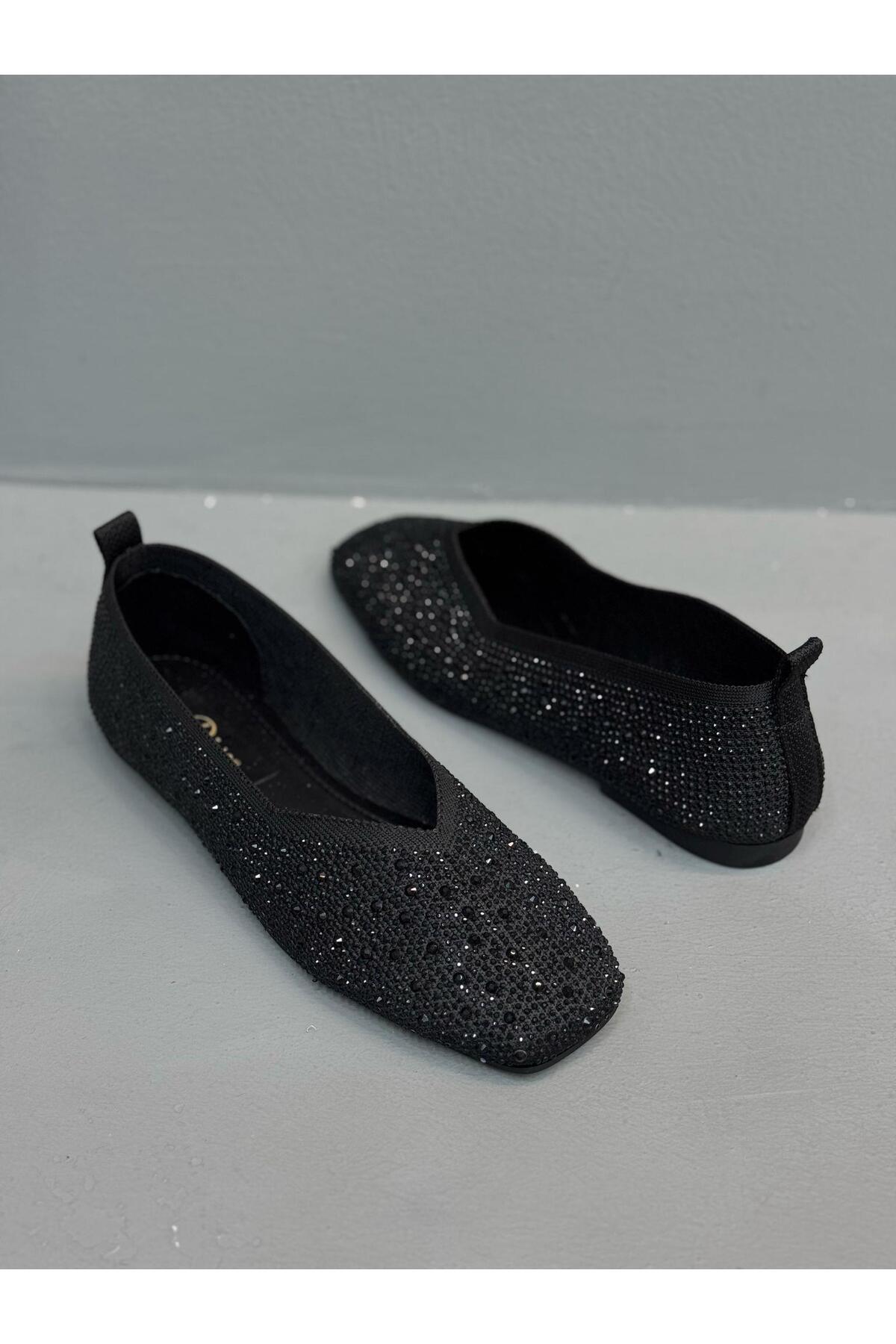Siyah Taşlı Triko Kadın Günlük Babet Siyah Taşlı Triko Kadın Günlük Babet 25205-01 40