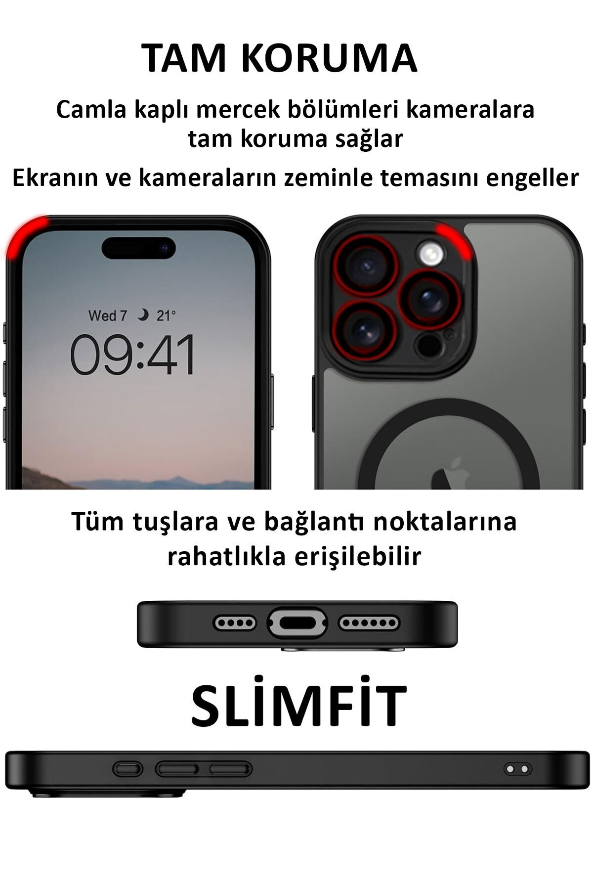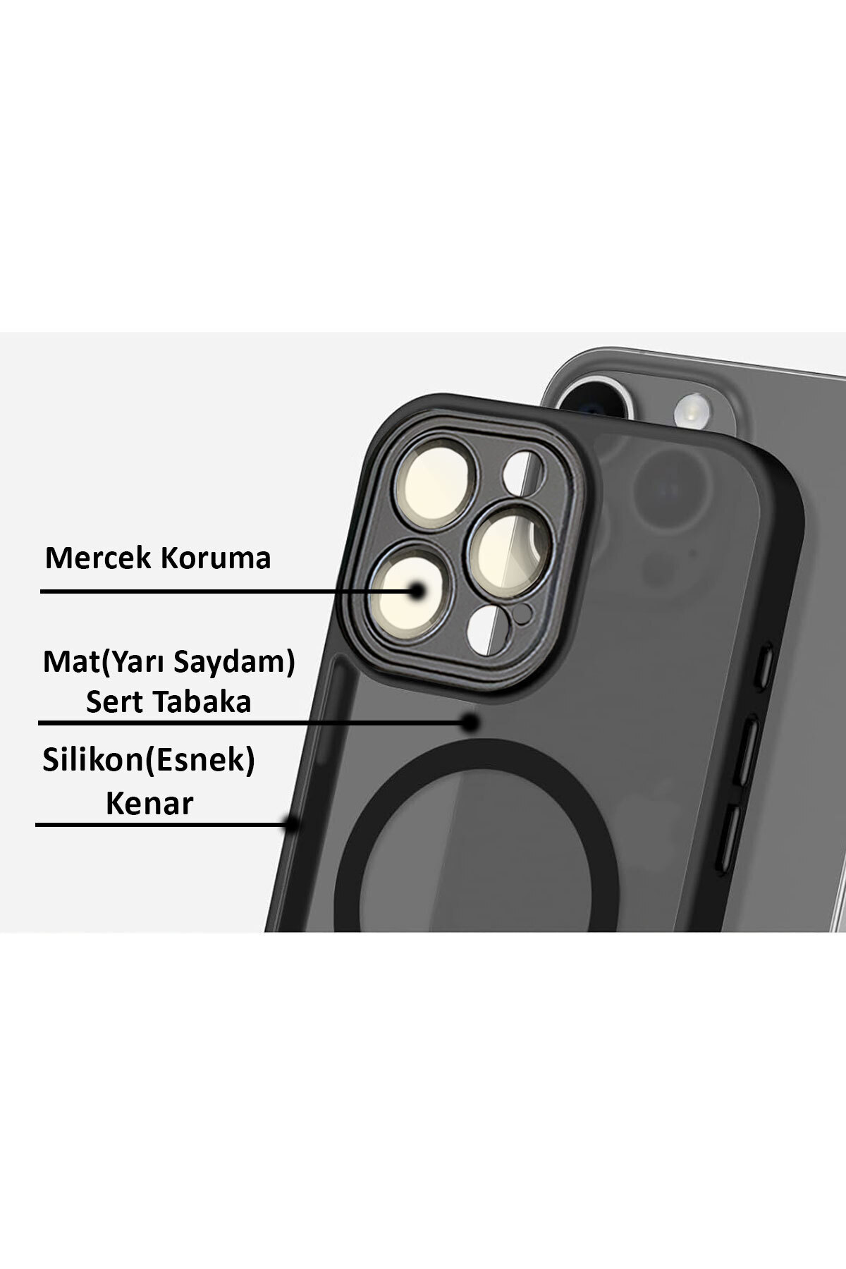 iPhone 16 Pro Max Kılıf Siyah Magsafe Wireless Şarj Özellikli Kamera Lens Korumalı Mat Silikon iPhone 16 Pro Max Kılıf Siyah Magsafe Wireless Şarj Özellikli Kamera Lens Korumalı Mat Silikon 16PROMAXALVİN تک سایز