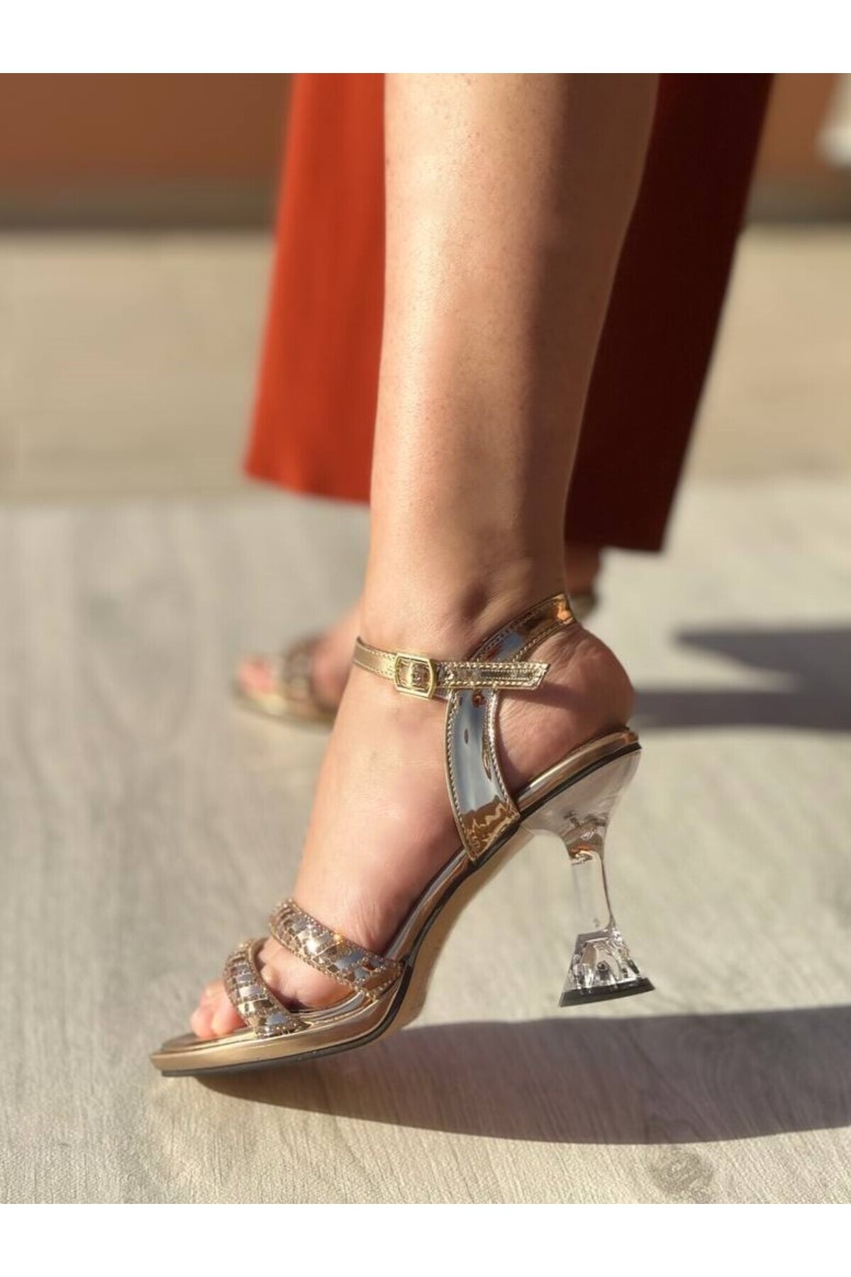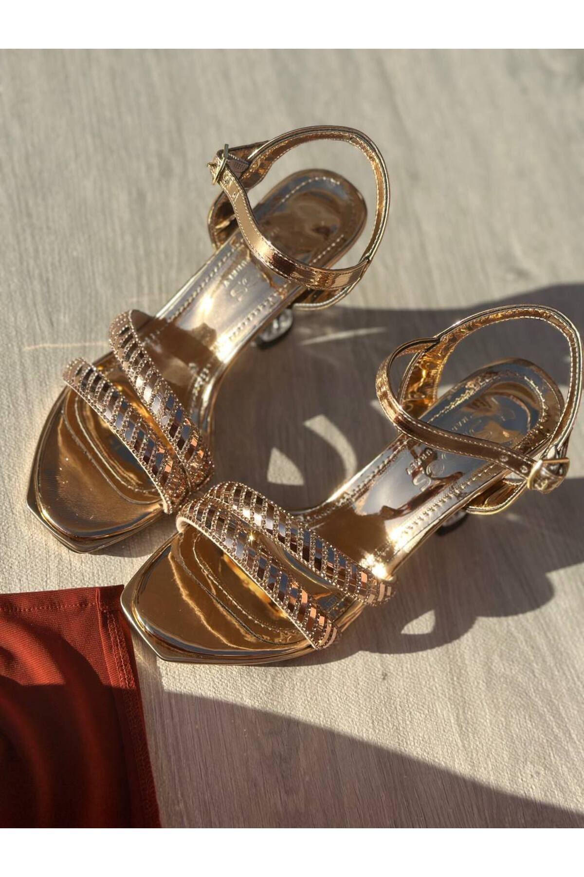 Bakır İki Bantlı Kalın Taşlı Açık Abiye Ayakkabı Bakır İki Bantlı Kalın Taşlı Açık Abiye Ayakkabı SHBSL020 40