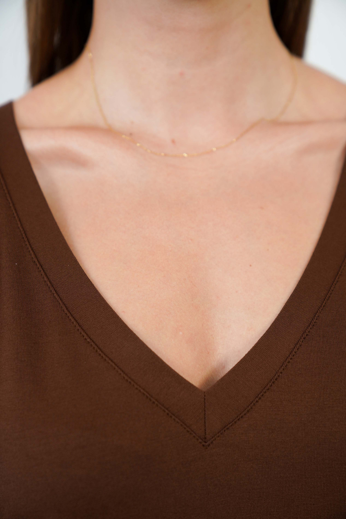 Viskon Dökümlü V Yaka Tişört-Kahverengi Viskon Dökümlü V Yaka Tişört-Kahverengi 5057001 48