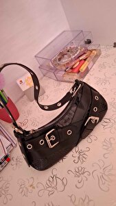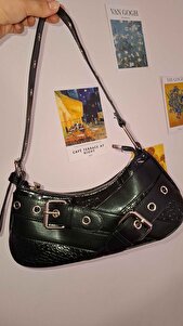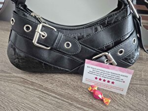 Siyah Kroko Baget Kadın Omuz & Çapraz Çanta – Kemer Detaylı Vegan Deri Fermuarlı Siyah Kroko Baget Kadın Omuz & Çapraz Çanta – Kemer Detaylı Vegan Deri Fermuarlı KMR.ST. Standart