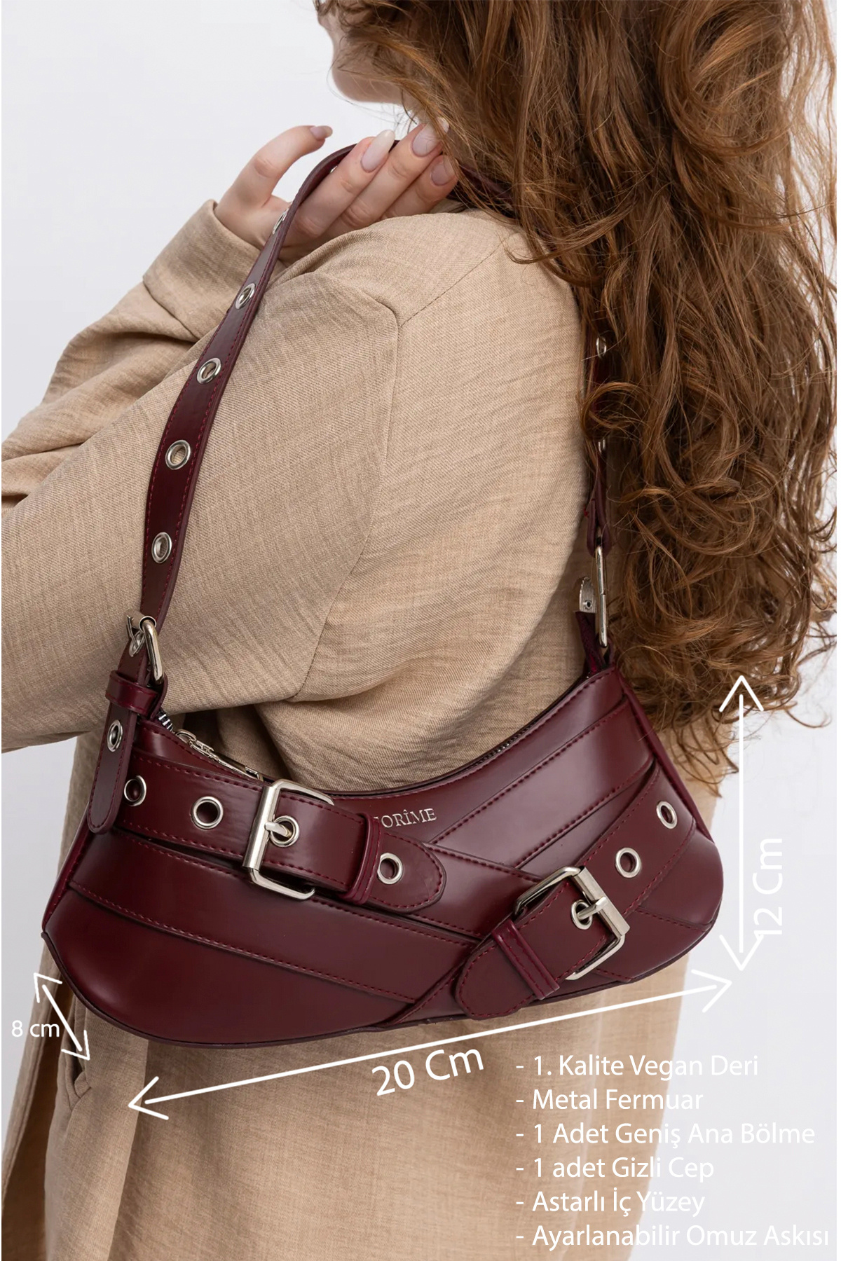 Bordo Kemer Baget Omuz & Çapraz Çanta – Vegan Deri, Fermuar & Ayarlanabilir Askı Bordo Kemer Baget Omuz & Çapraz Çanta – Vegan Deri, Fermuar & Ayarlanabilir Askı KMR.ST. Standart