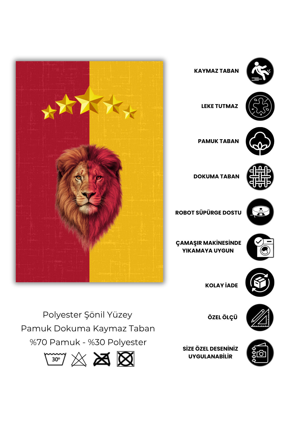 Aslan Desenli Sarı Kırmızı Taraftar Halısı Dijital Baskılı Dokuma Tabanlı Kaymaz Oturma Odası Halısı Aslan Desenli Sarı Kırmızı Taraftar Halısı Dijital Baskılı Dokuma Tabanlı Kaymaz Oturma Odası Halısı SP002 100 x 300