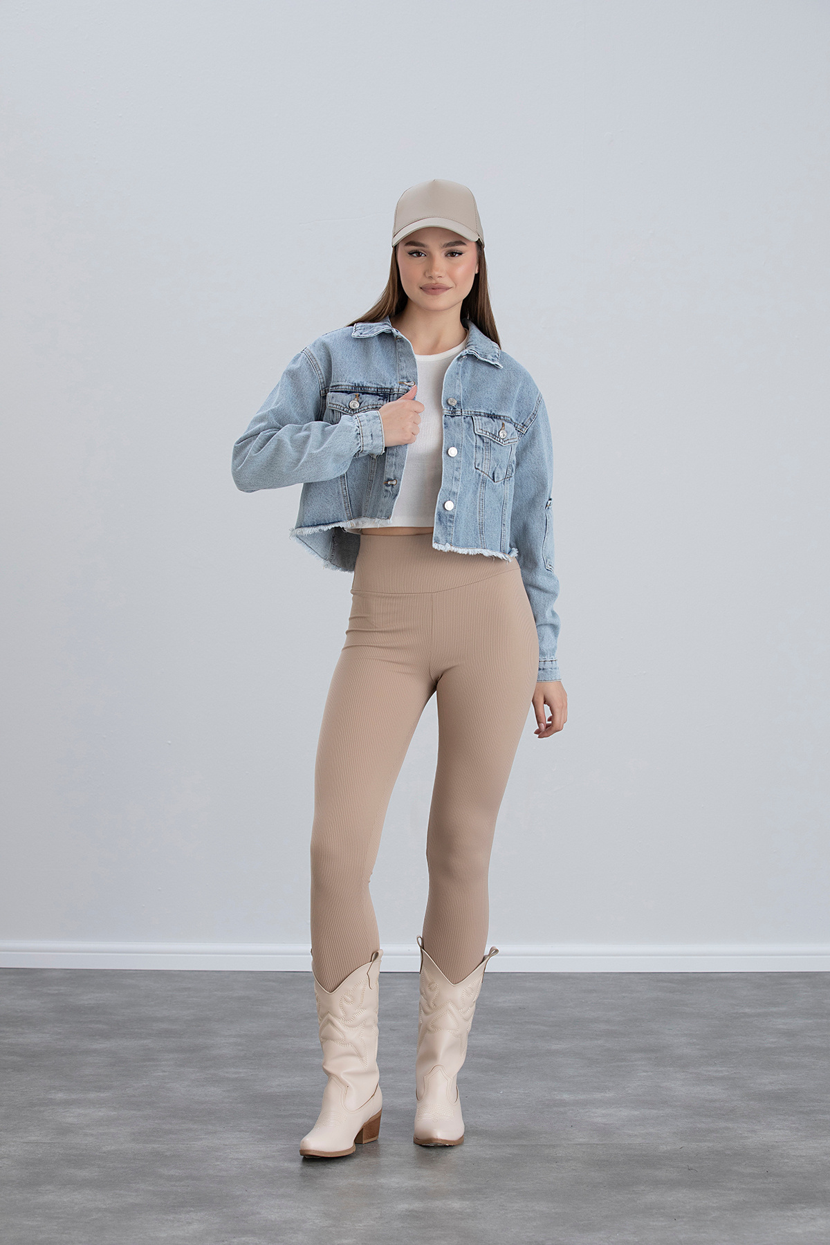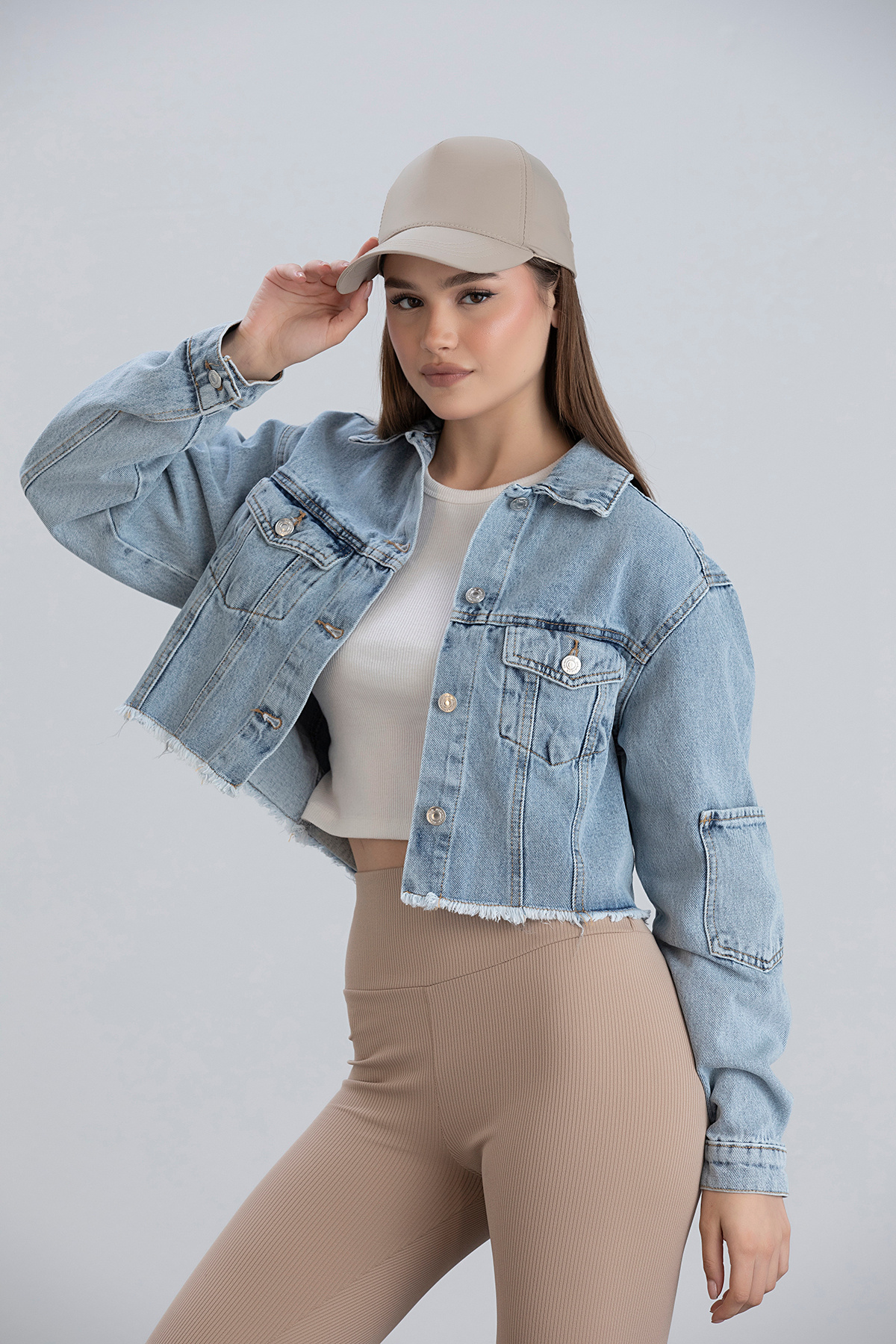 Kadın Mavi Püsküllü Kol Cep Detaylı Çift Cepli Krop Kot Ceket Kadın Mavi Püsküllü Kol Cep Detaylı Çift Cepli Krop Kot Ceket as-0007 XL