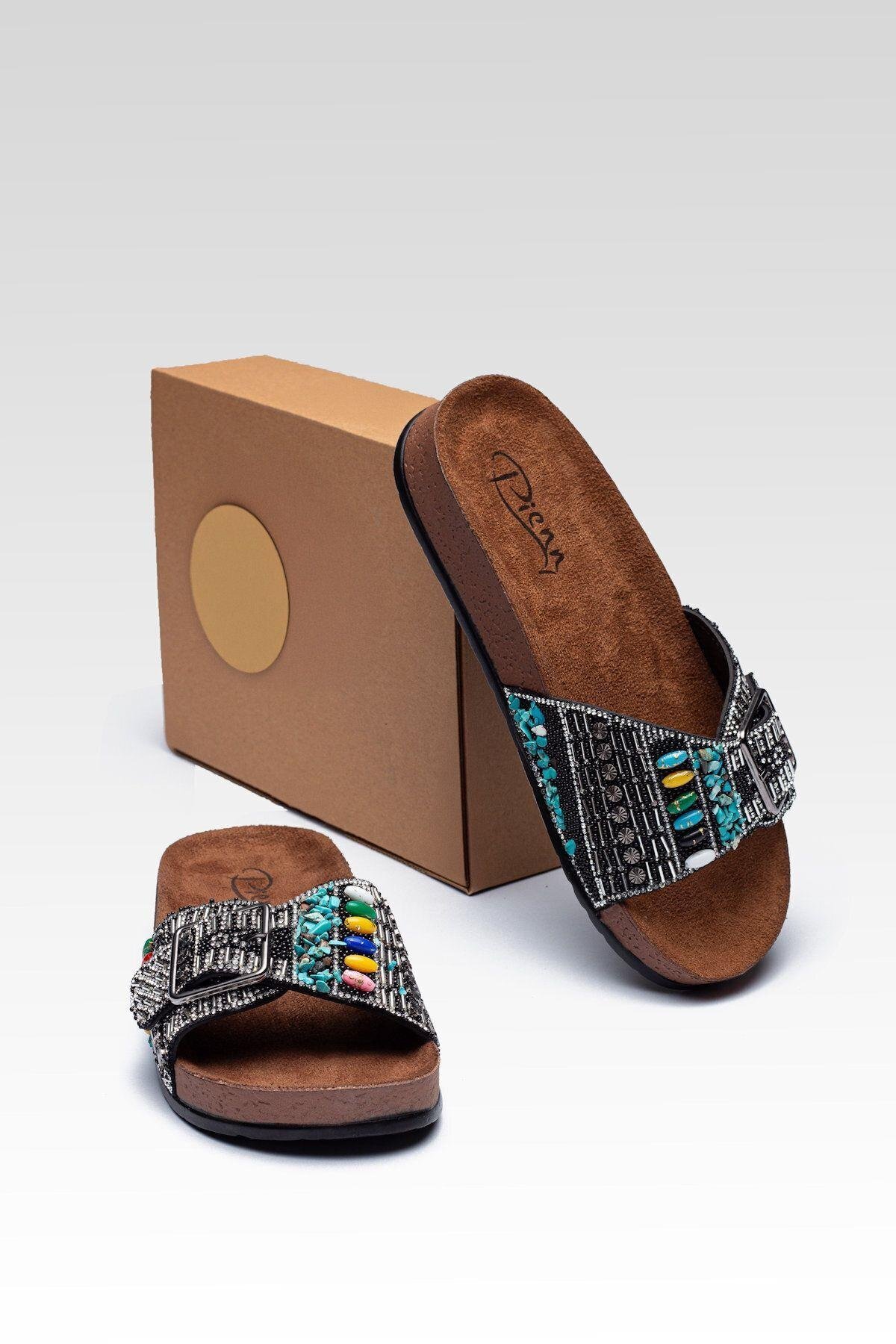 Parlak Taş Tokalı Kadın Kaymaz Yumuşak Ortopedik Taban Günlük Terlik Parlak Taş Tokalı Kadın Kaymaz Yumuşak Ortopedik Taban Günlük Terlik DM033 40