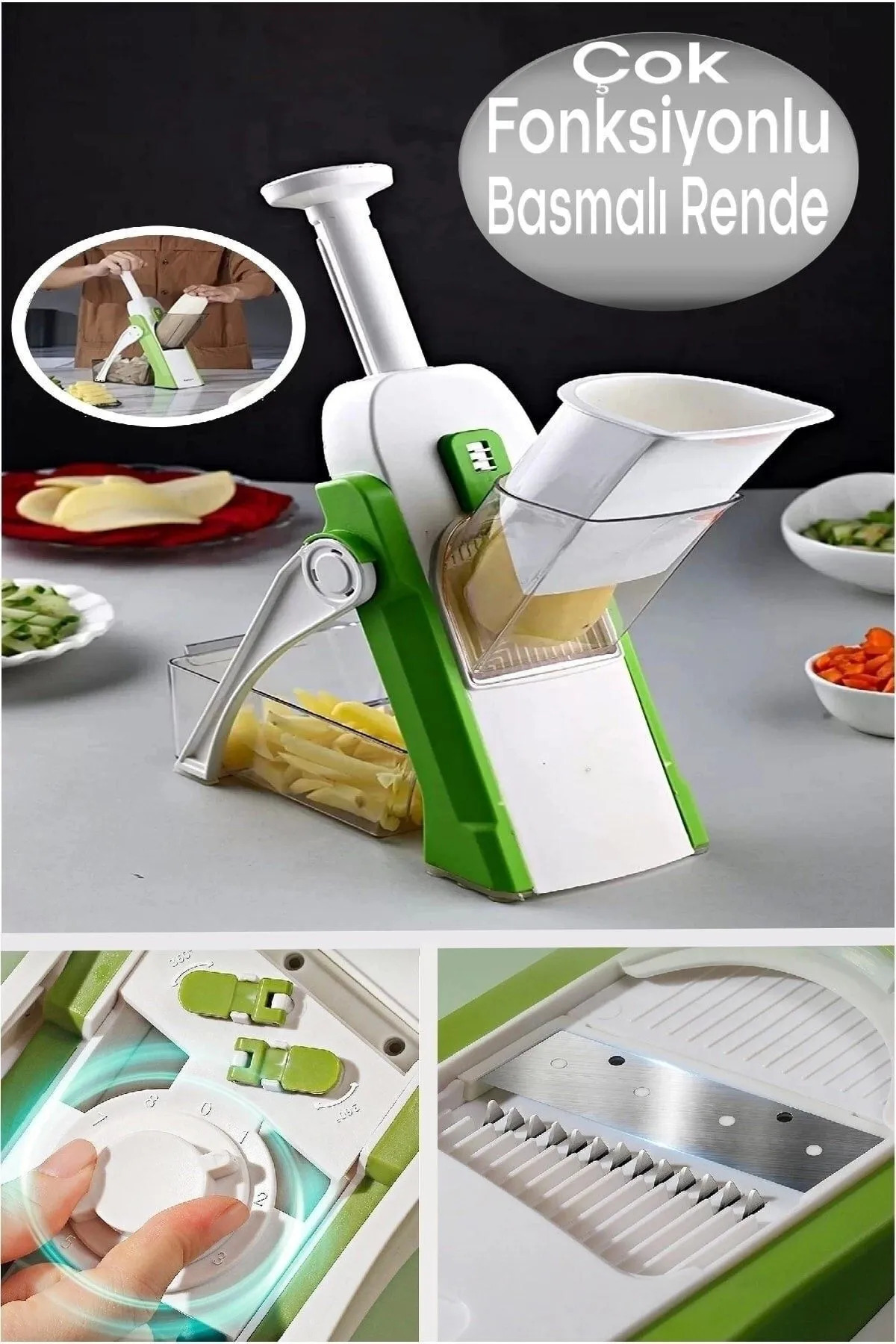 Çok Fonksiyonlu Yaylı Basmalı Sebze Patates Doğrayıcı Dilimleyici Hazneli Rende Mandolin Rende Çok Fonksiyonlu Yaylı Basmalı Sebze Patates Doğrayıcı Dilimleyici Hazneli Rende Mandolin Rende HAN-BR-RND110 تک سایز