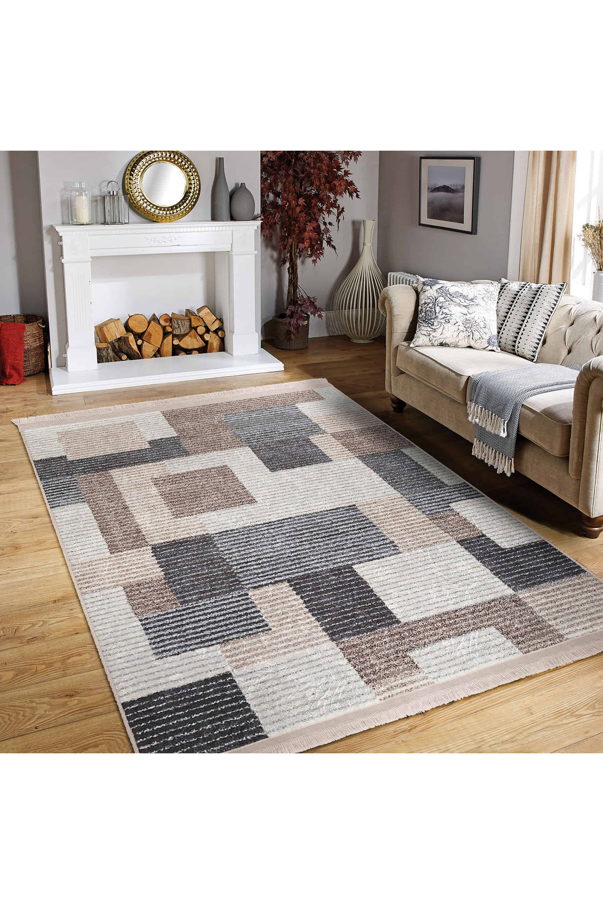 Krem ve Gri Tonlarında Modern Geometrik Desenli Yıkanabilir Kaymaz Tabanlı Krem ve Gri Tonlarında Modern Geometrik Desenli Yıkanabilir Kaymaz Tabanlı DikHali-11856 160 x 230
