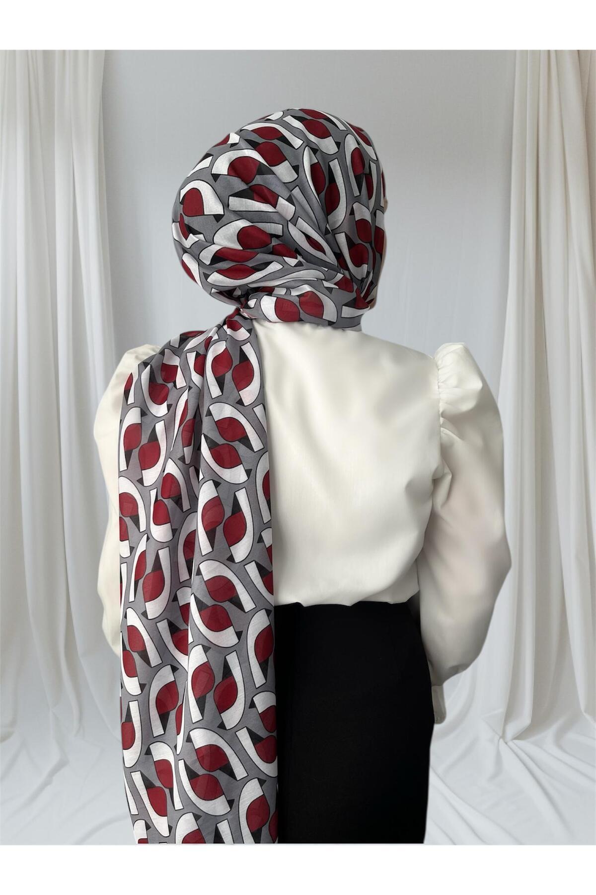 Retro Desenli Bordo Gri Soft Şal Retro Desenli Bordo Gri Soft Şal geosoftşal 75 x 185