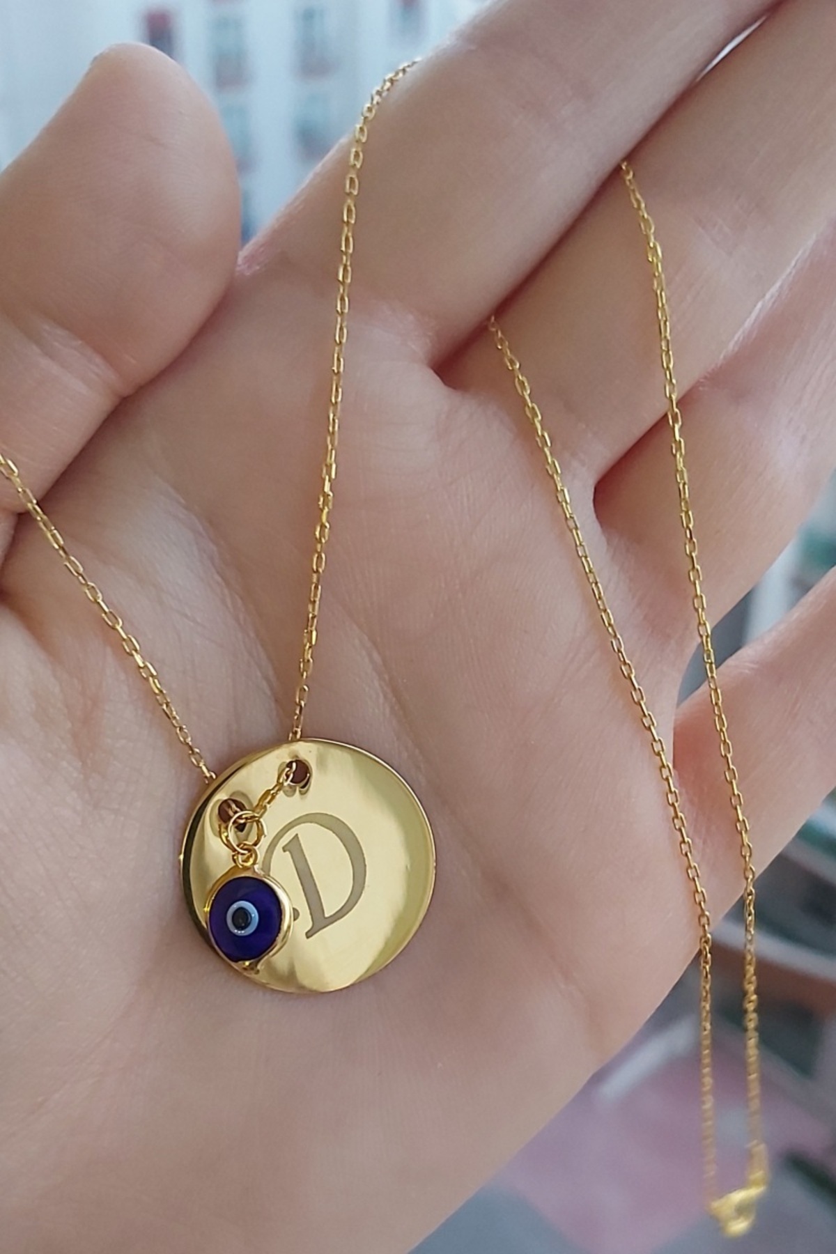 925 Ayar Gümüş 24 Ayar Altın Kaplama 2 Nazar Boncuklu Harf Kolye 925 Ayar Gümüş 24 Ayar Altın Kaplama 2 Nazar Boncuklu Harf Kolye GM0000740 65 cm