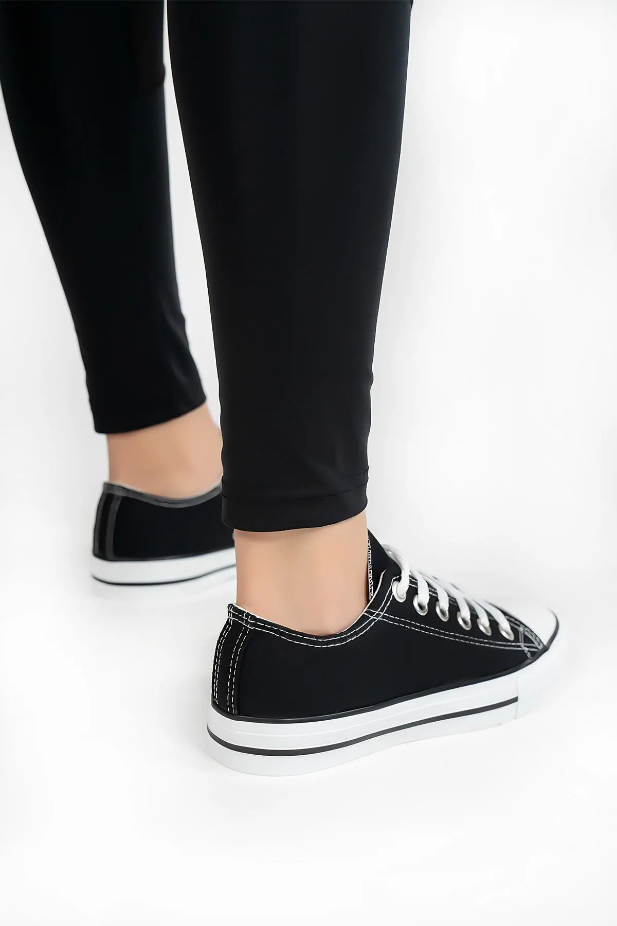 Kadın Siyah Beyaz Kısa Günlük Keten Spor Ayakkabı Sneaker Kadın Siyah Beyaz Kısa Günlük Keten Spor Ayakkabı Sneaker COCSNKR 40