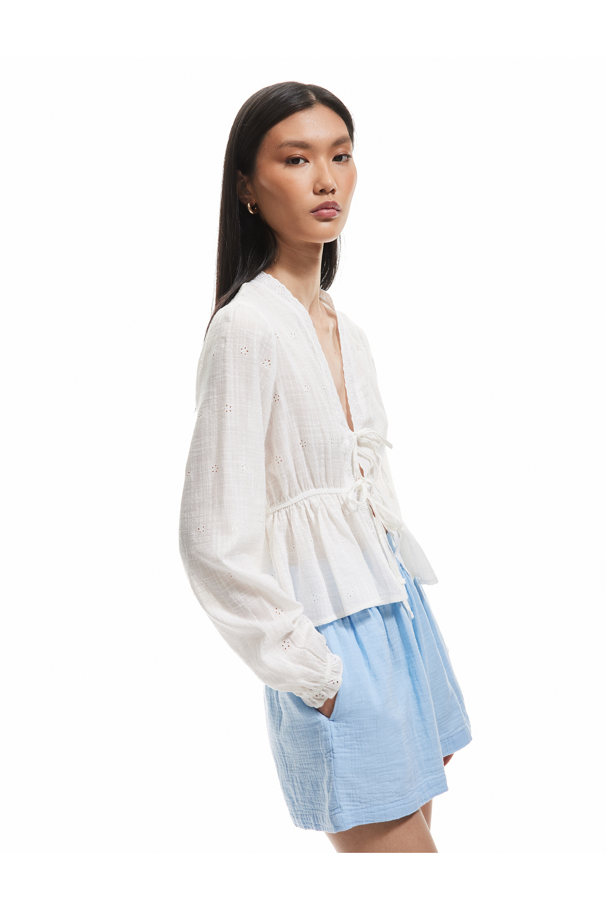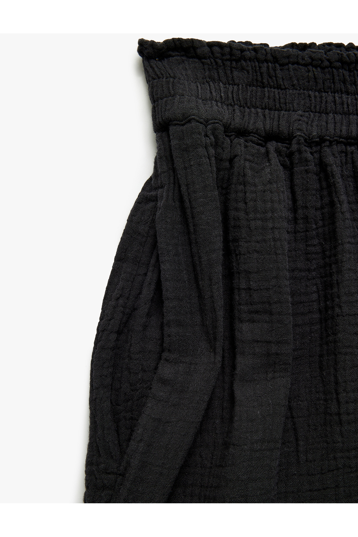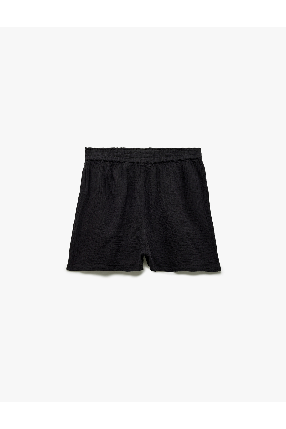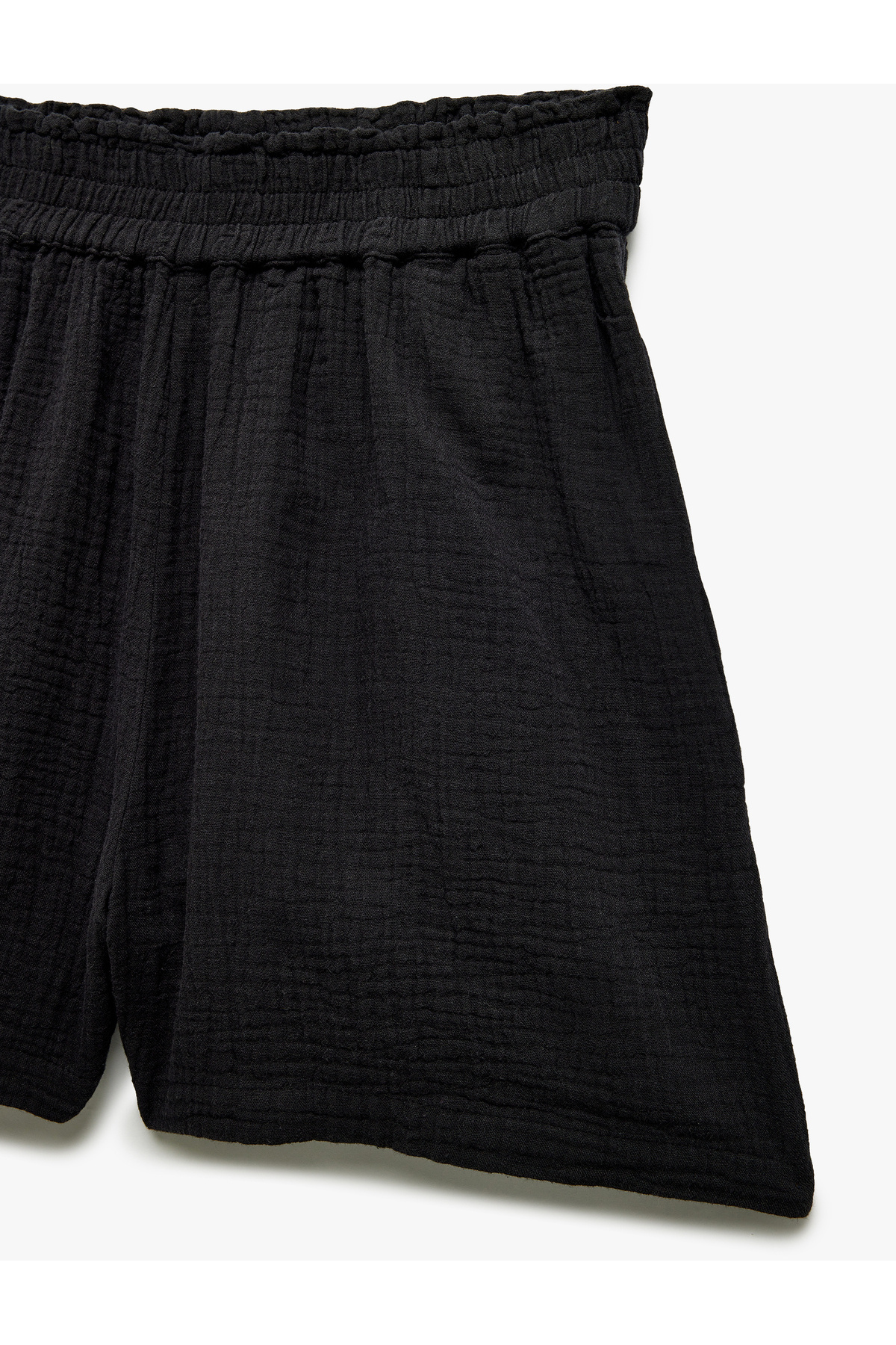 Lastikli Yüksek Bel Cepli Pamuklu Mini Müslin Şort Lastikli Yüksek Bel Cepli Pamuklu Mini Müslin Şort 5SAK40122PW 42