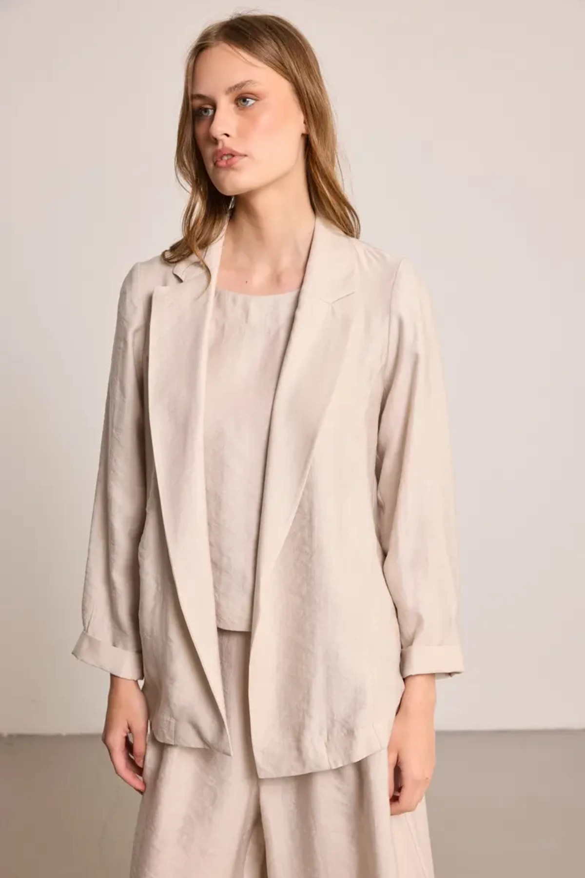 Rahat Kesim Lyocell Ceket - Taş Rahat Kesim Lyocell Ceket - Taş 25YG002631 XL