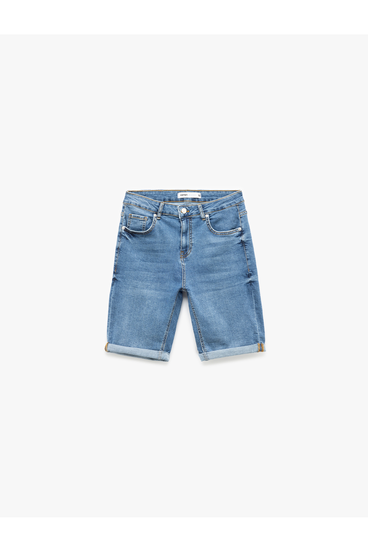 Oversize Kot Şort Bermuda Cep Detaylı Pamuklu Oversize Kot Şort Bermuda Cep Detaylı Pamuklu 4SAM40093ND dark indigo 34