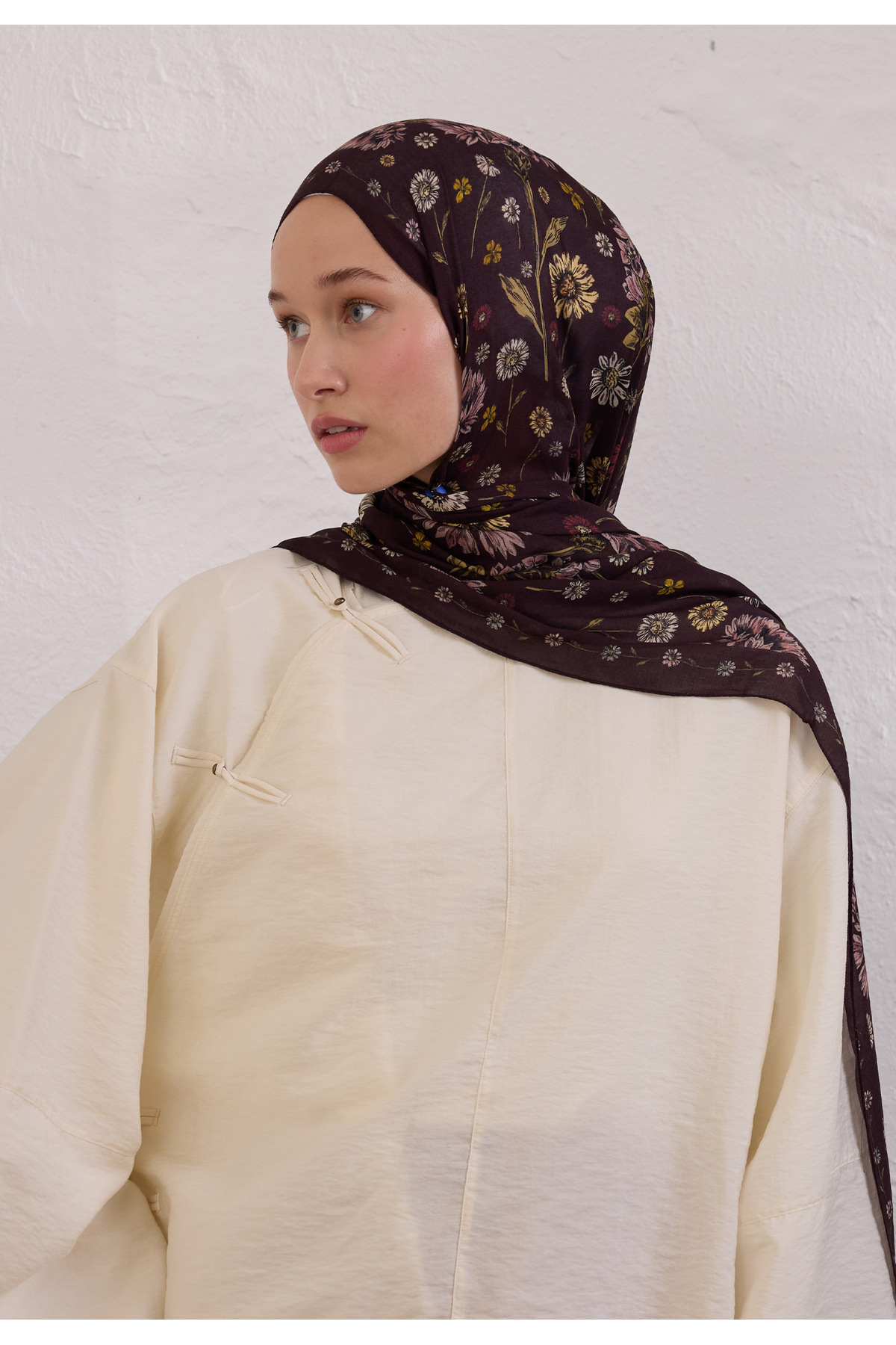 BLOOMING DAHLIA DESEN RAMİ ŞAL KAHVE BLOOMING DAHLIA DESEN RAMİ ŞAL KAHVE FS25DSNS000039 تک سایز