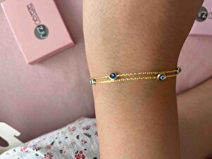 925 Ayar Gümüş Gold 2 Sıra Zincirli Nazar Göz Bileklik 925 Ayar Gümüş Gold 2 Sıra Zincirli Nazar Göz Bileklik NRZ1000359 تک سایز