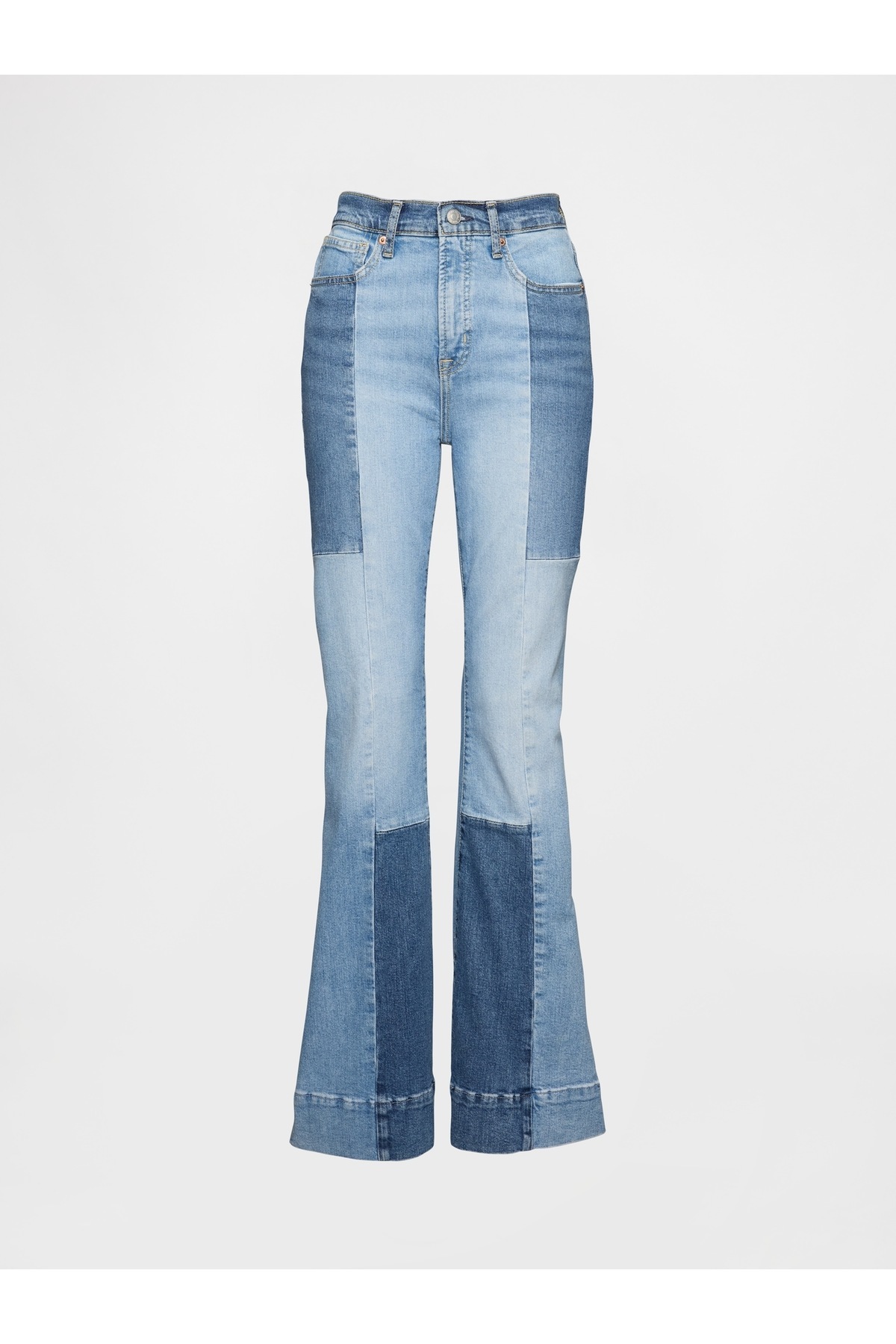 Kadın Mavi High Rise Patchwork '70s Flare Jean Pantolon Kadın Mavi High Rise Patchwork '70s Flare Jean Pantolon 606277 27/KISA