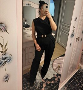 Kadın Siyah Fiyonk Detaylı Dokuma Tulum WF00111 Kadın Siyah Fiyonk Detaylı Dokuma Tulum WF00111 40
