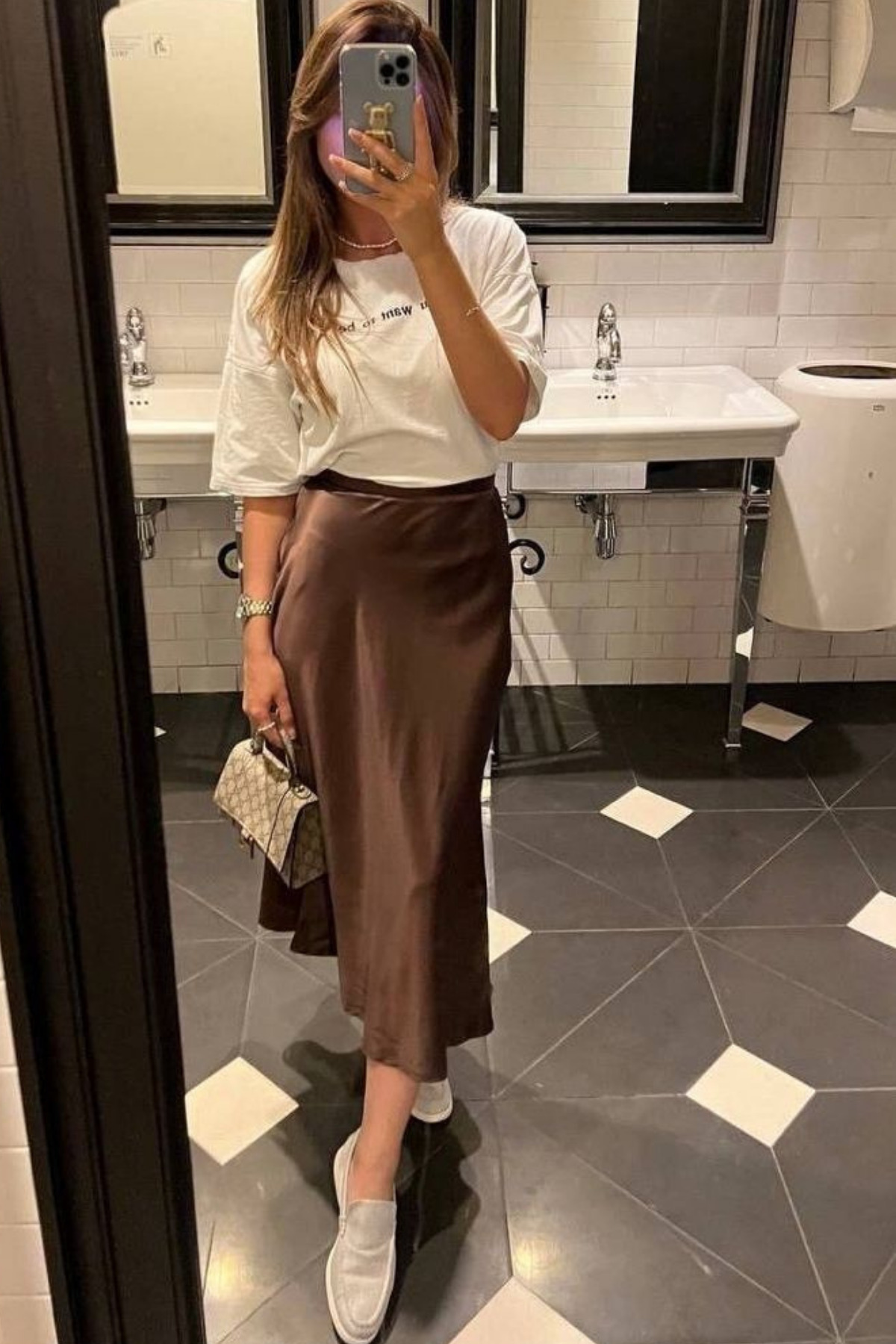 KADIN Şık Yazlık Midi Boy Saten Etek KADIN Şık Yazlık Midi Boy Saten Etek SUN56 XL