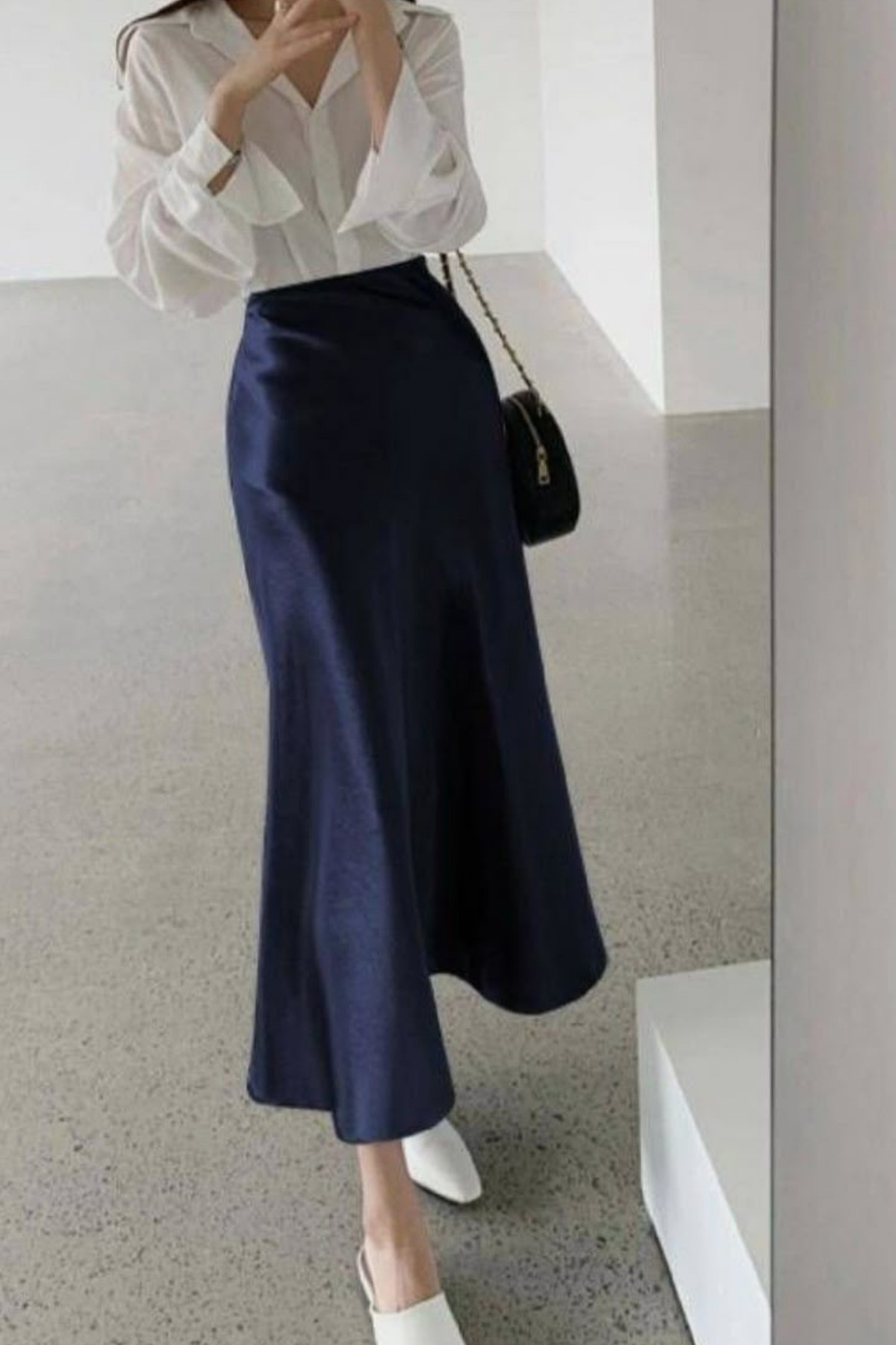 KADIN Şık Yazlık Midi Boy Saten Etek KADIN Şık Yazlık Midi Boy Saten Etek SUN56 XL